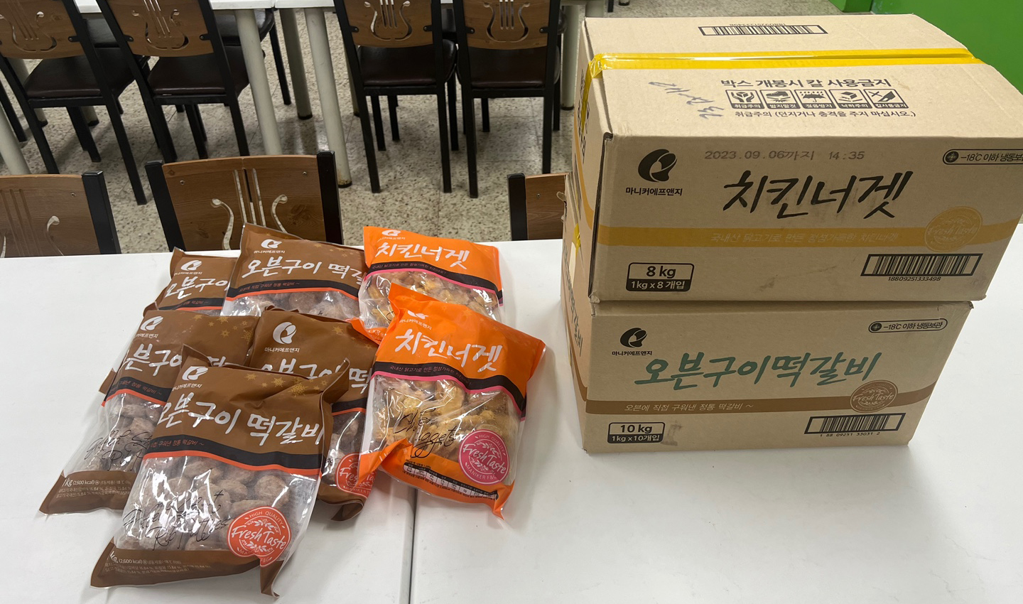 마니커에서 치킨너겟과 떡갈비를 후원해주셨습니다.