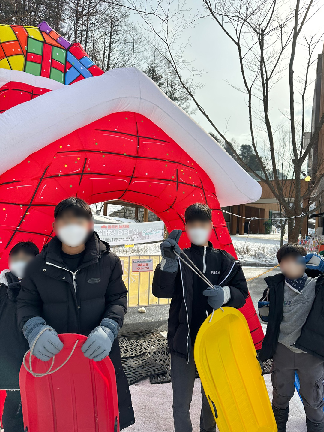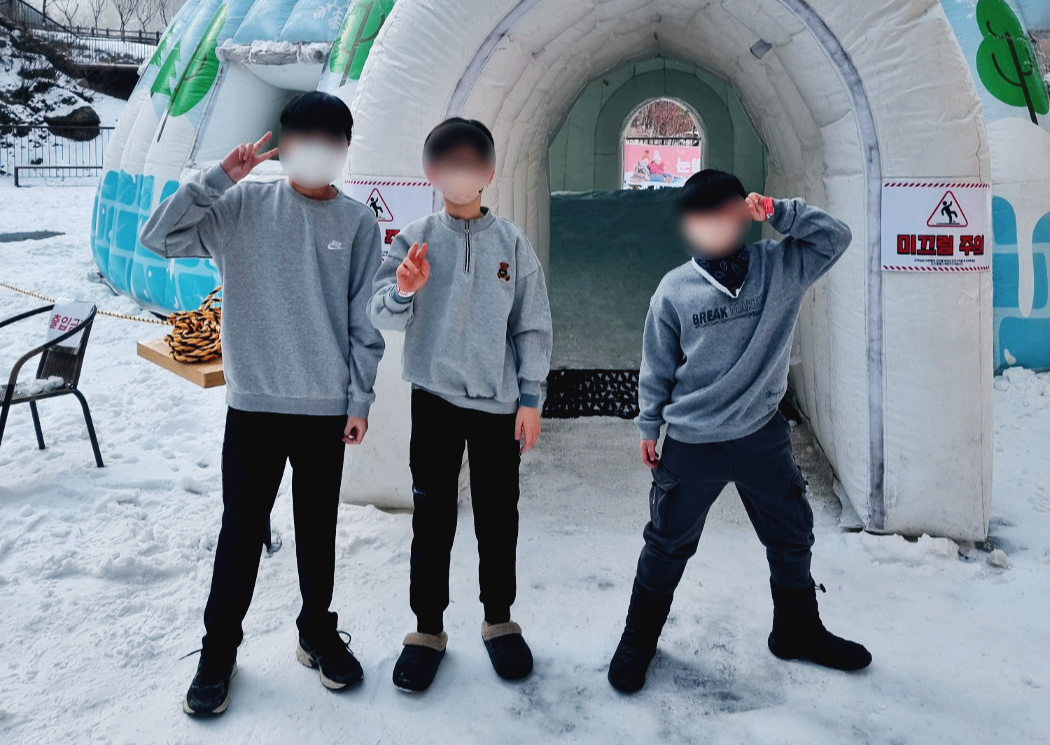 실외에서는 썰매도 타고, 눈놀이하면서 하루를 보냈어요~