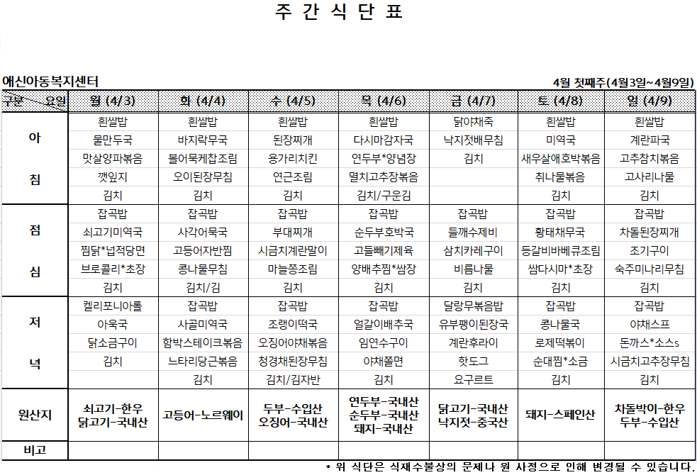 '[애신소식] > 주간식단표' 카테고리의 다른 글