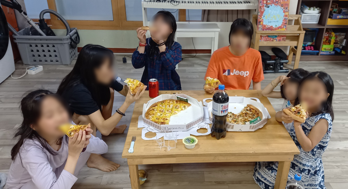 저녁간식으로 너무 맛있는 피자를 후원해주셨습니다.