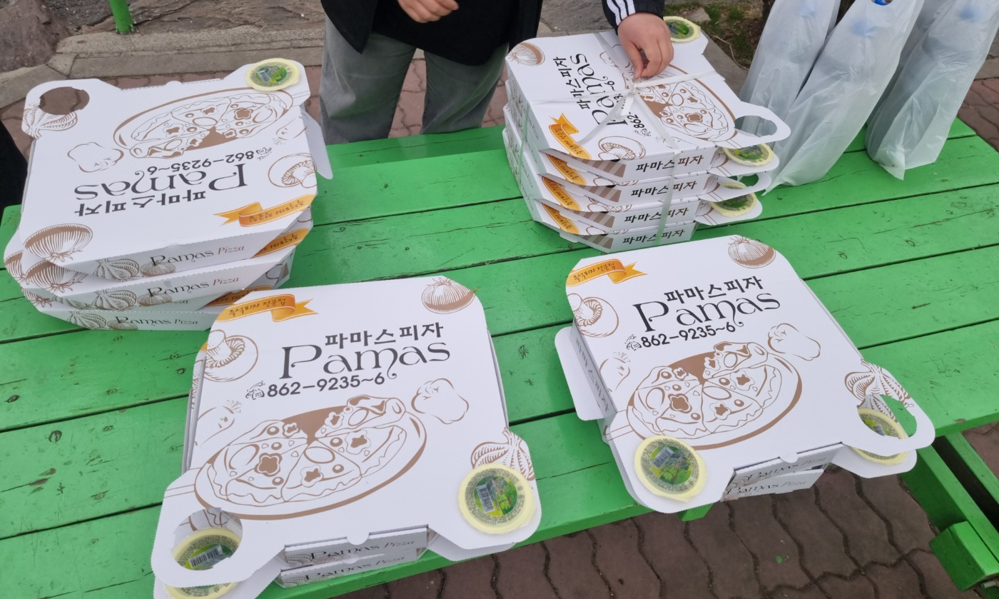 저녁간식으로 너무 맛있는 피자를 후원해주셨습니다.