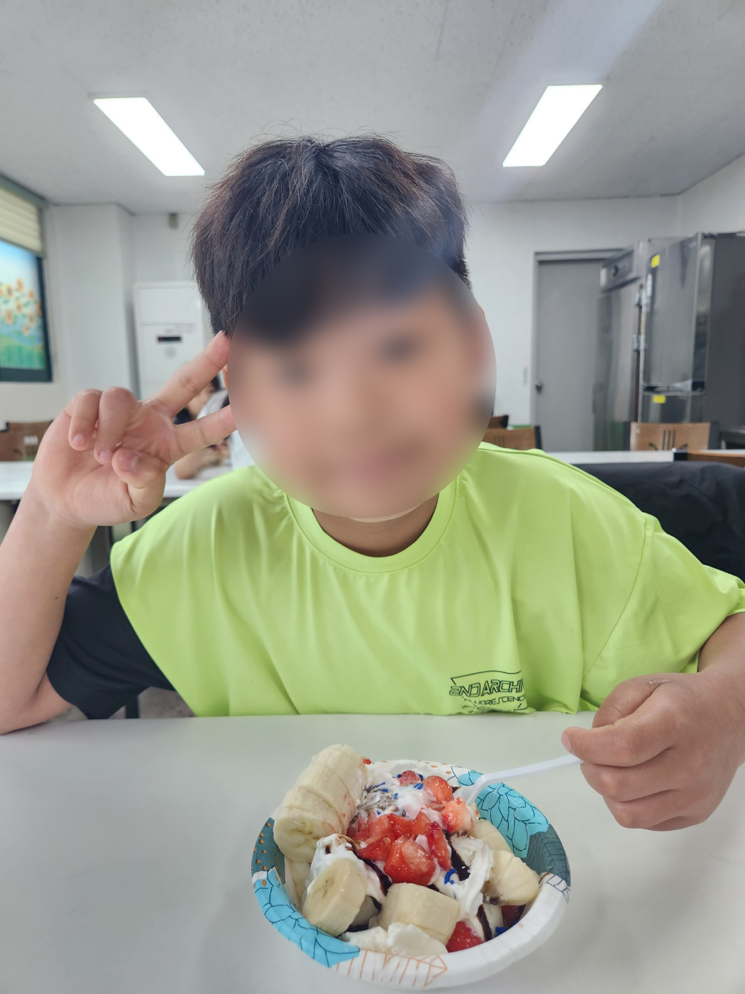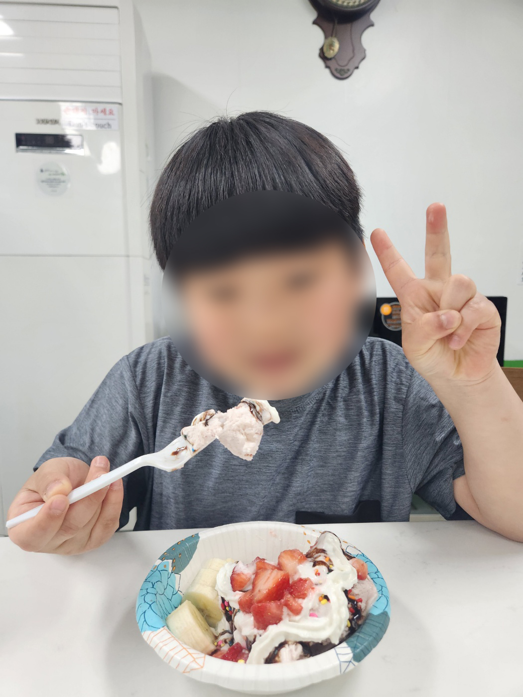 아이들에게 아이스크림 간식을 만들어주셨습니다 :-)