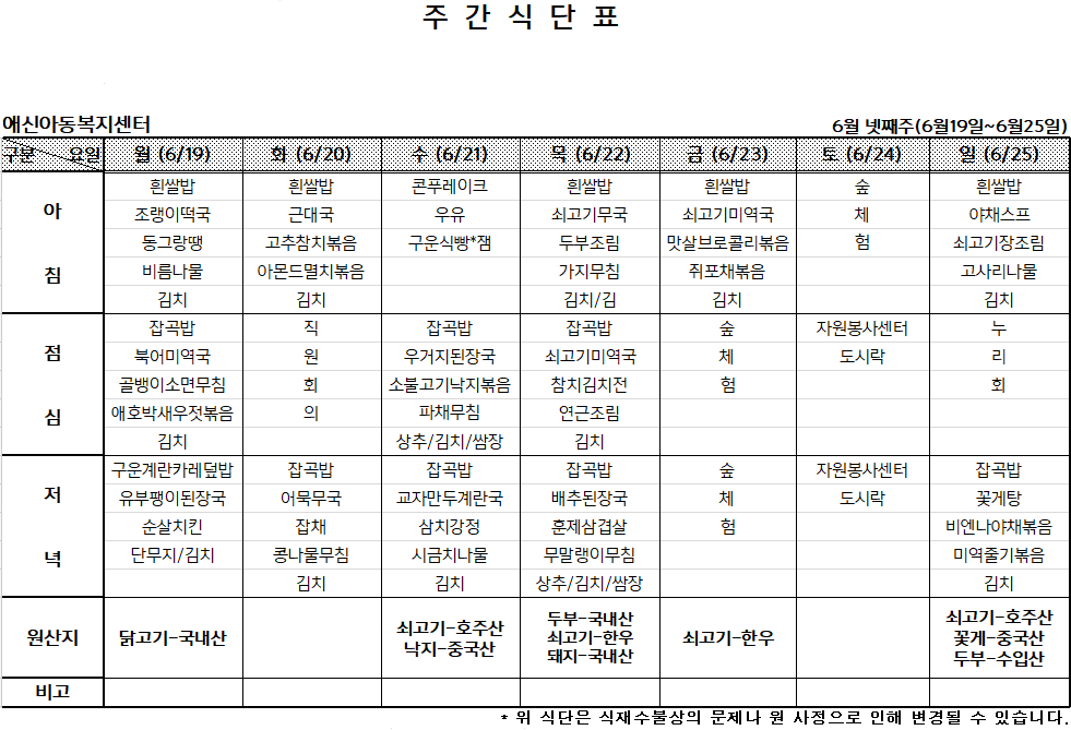 '[애신소식] > 주간식단표' 카테고리의 다른 글