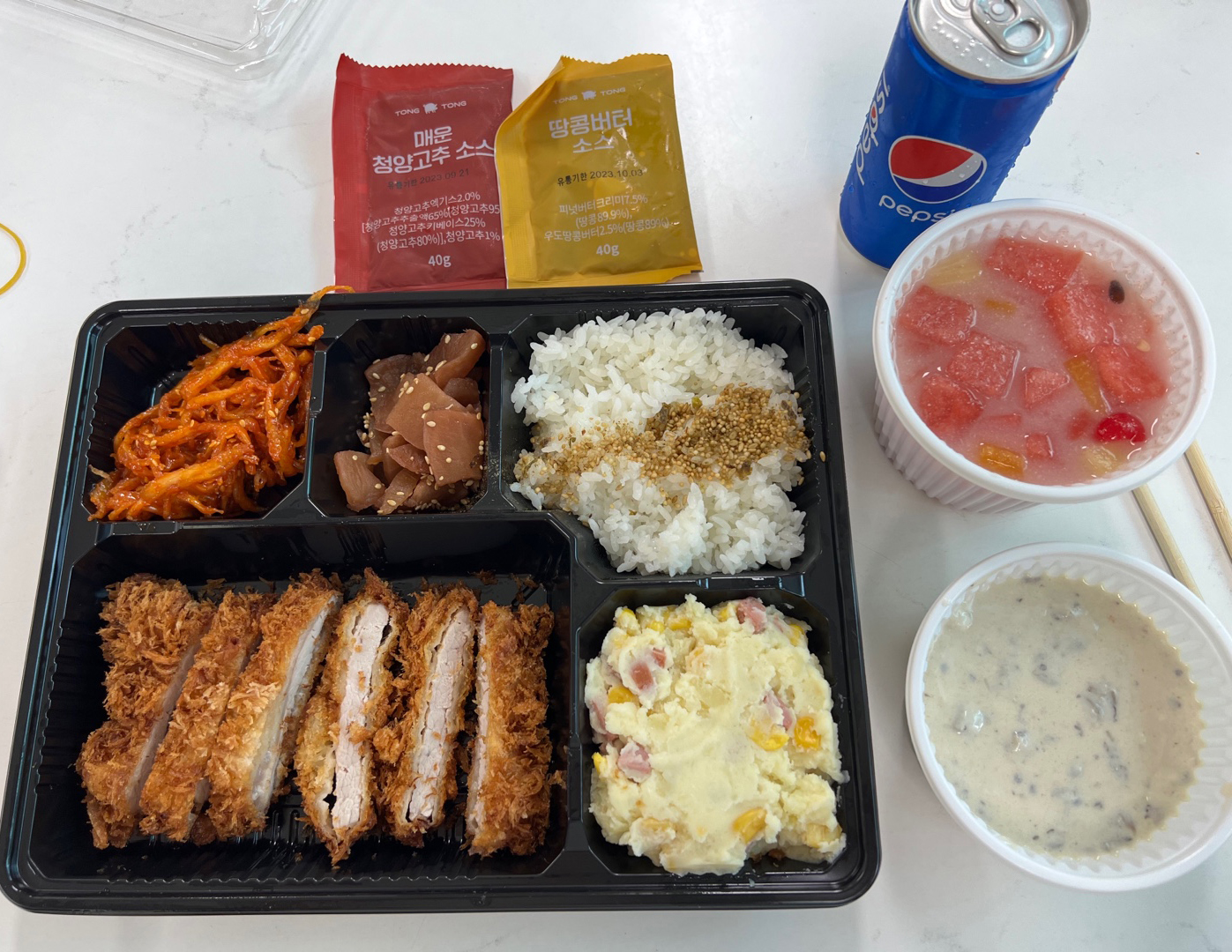 바삭바삭한 돈까스와 아이들이 너무 좋아하는 진미채!