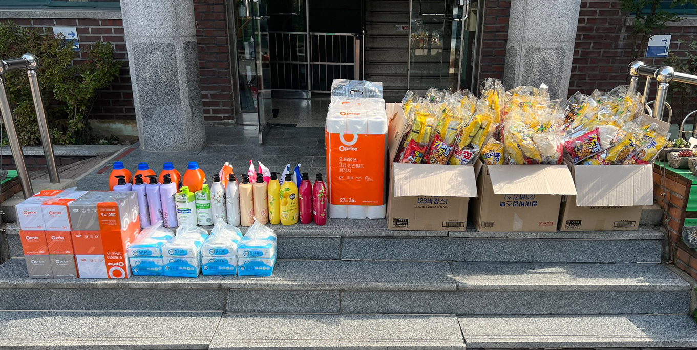 필요한 생필품과 개인과자선물을
