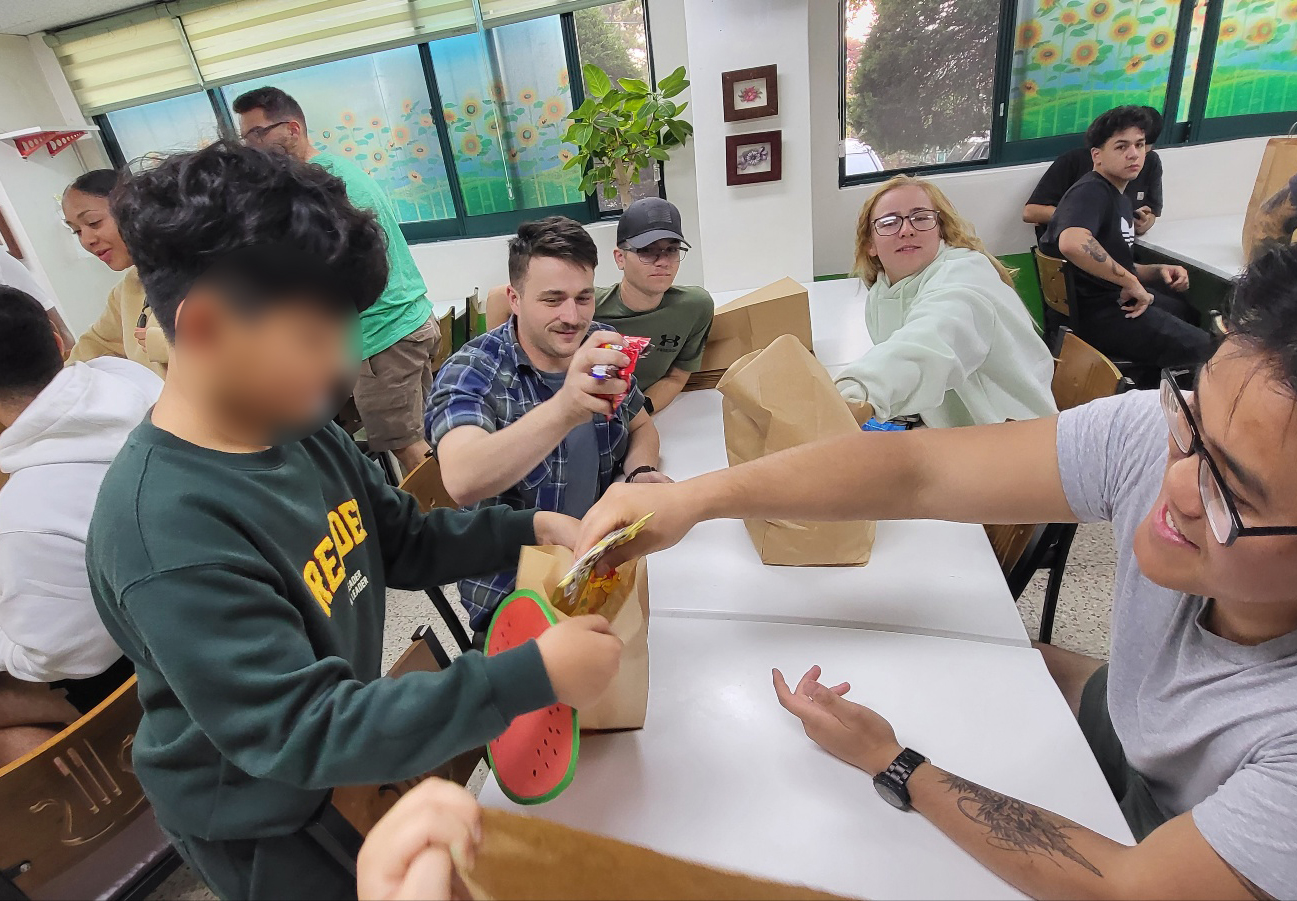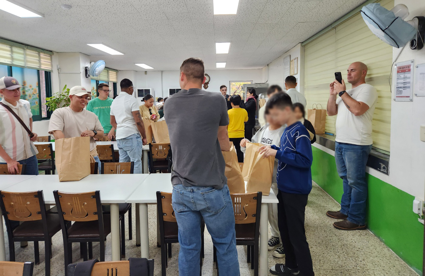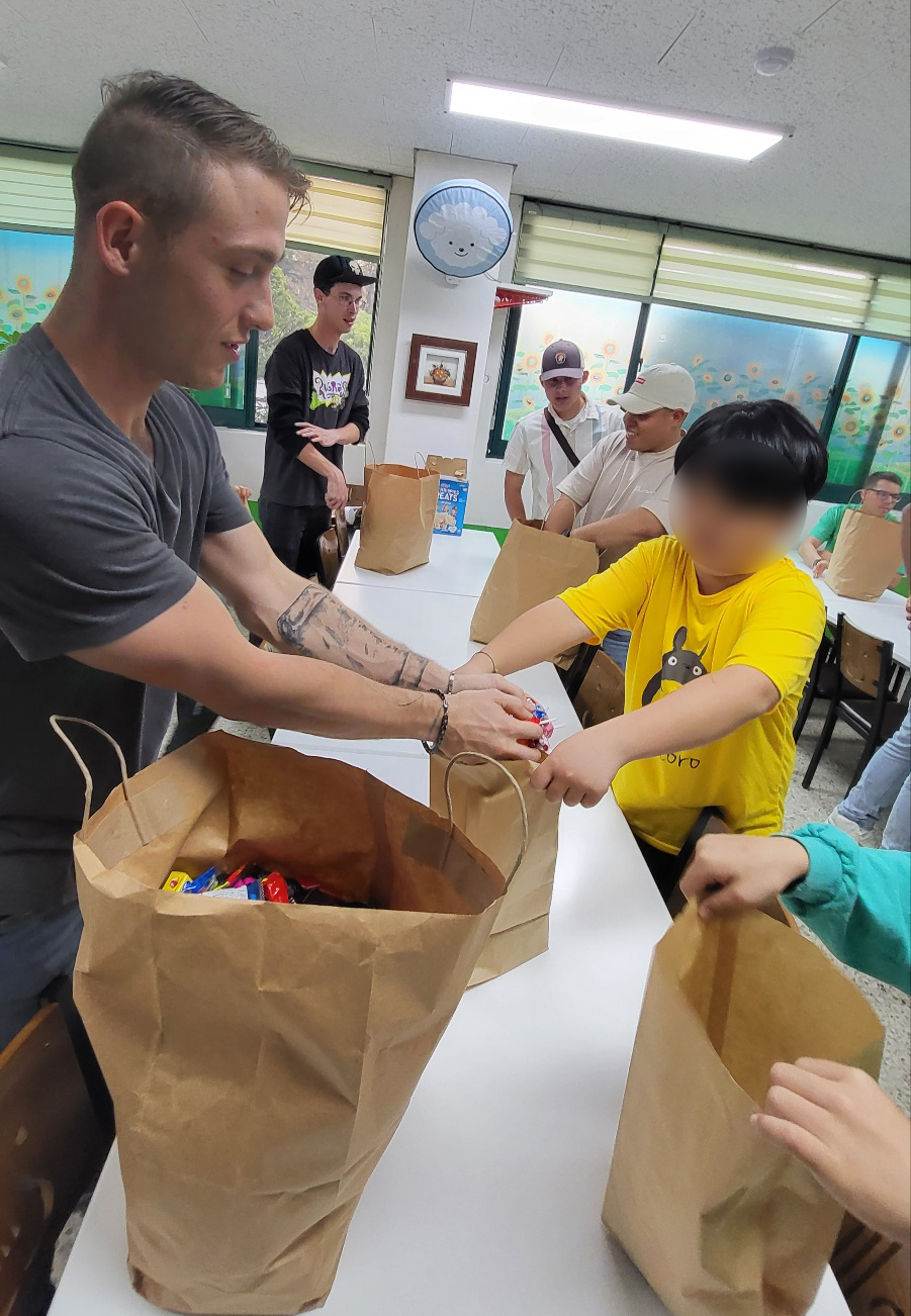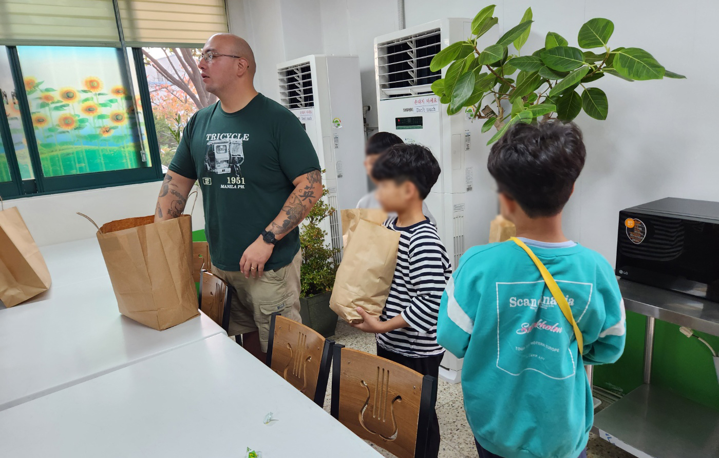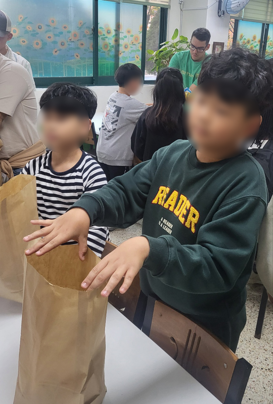 한가득 담긴 간식들에 아이들 얼굴에 웃음꽃이 피었어요:)