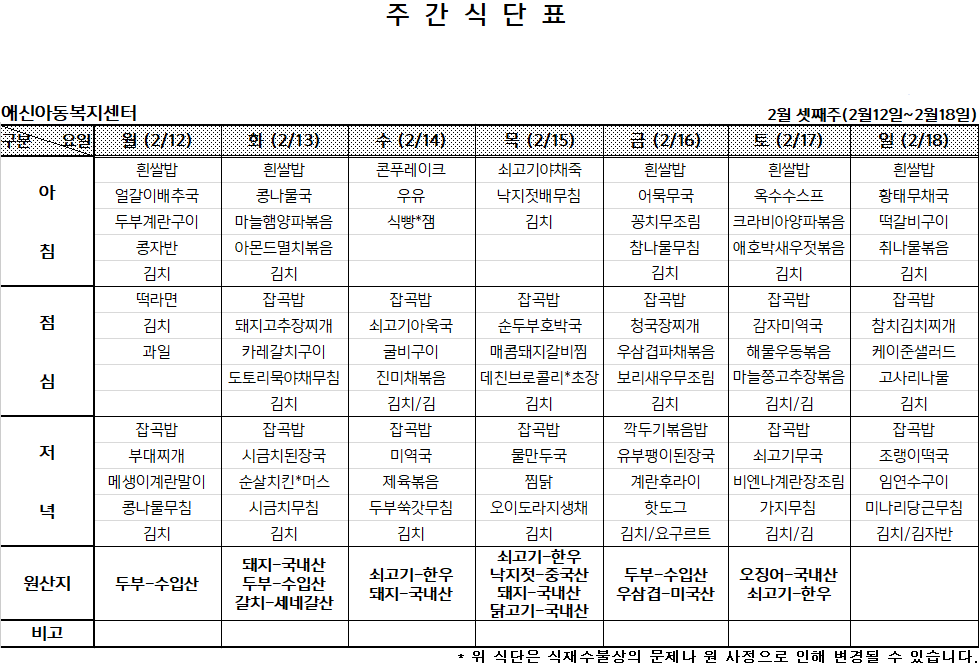 '[애신소식] > 주간식단표' 카테고리의 다른 글
