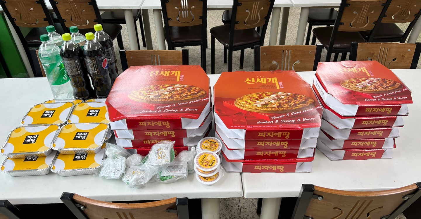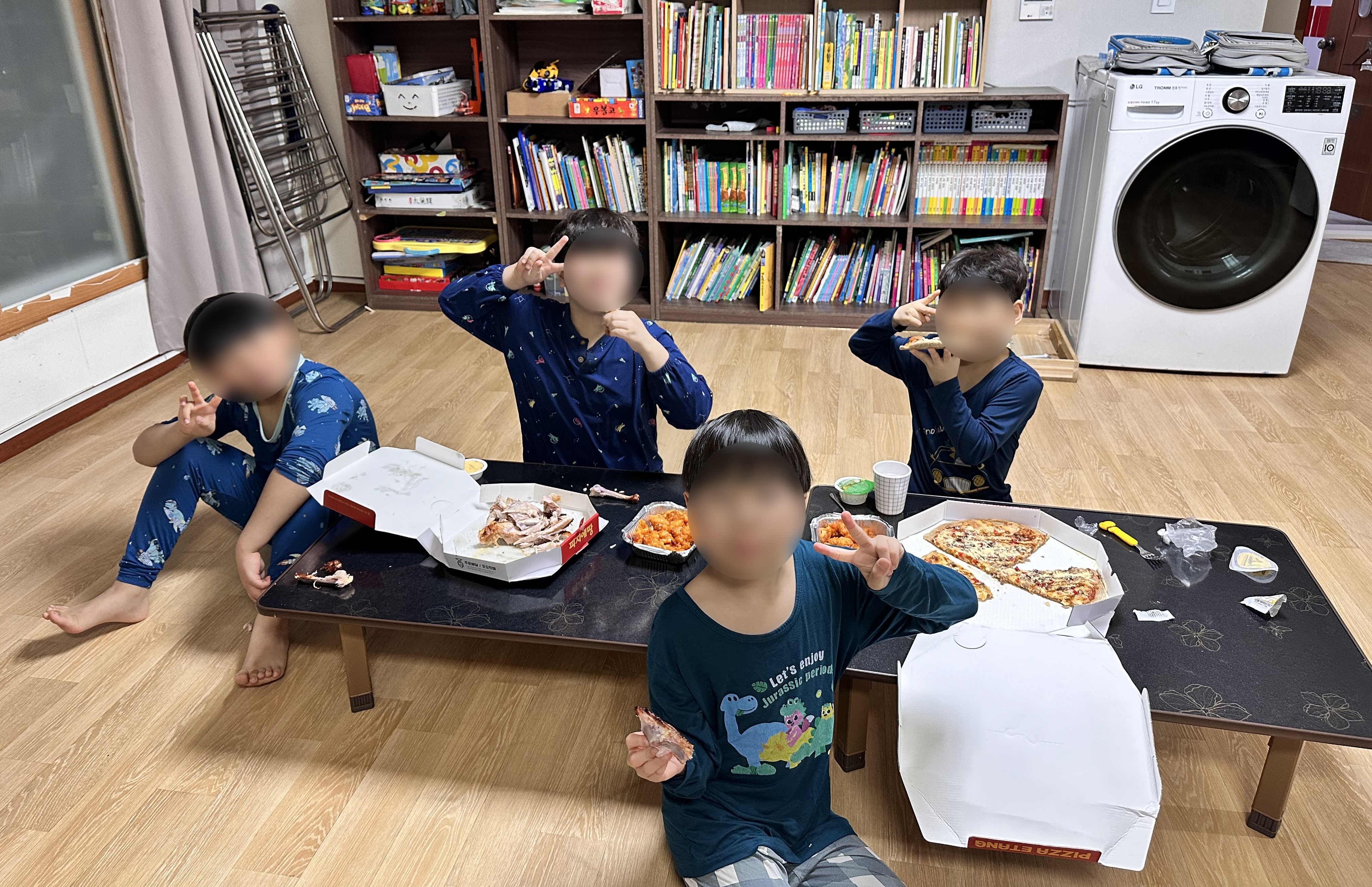 아이들 오후간식으로 피자와 치킨을 후원해주셨습니다.