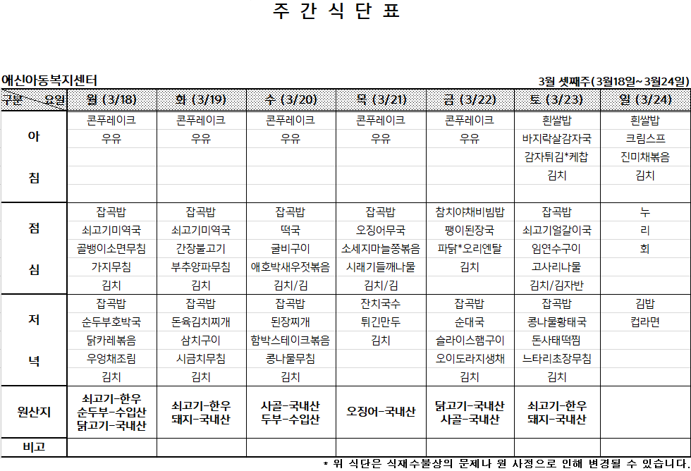 '[애신소식] > 주간식단표' 카테고리의 다른 글