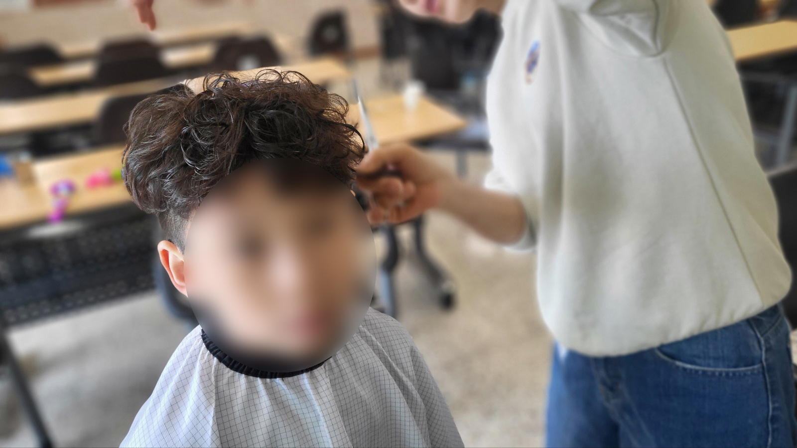 아이들 미용을 해주시고 계십니다.