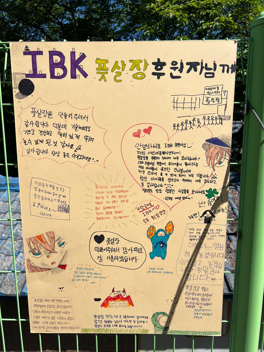 IBK투자증권에서 풋살장 조성을 지원해주셨습니다.