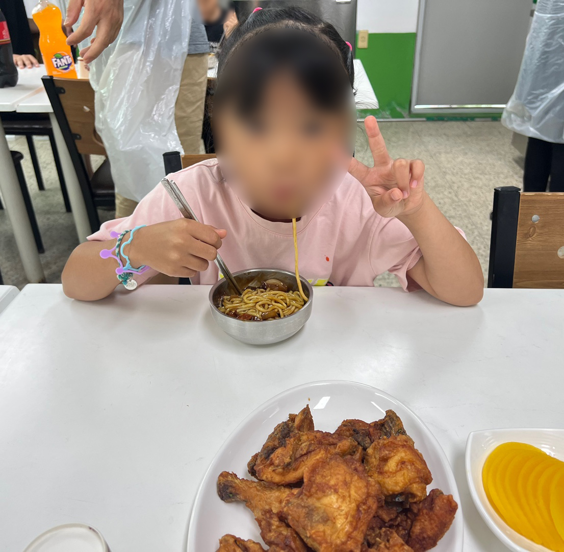 아이들에게 짜장면을 직접 만들어주시고 치킨을 후원해주셨습니다 :)