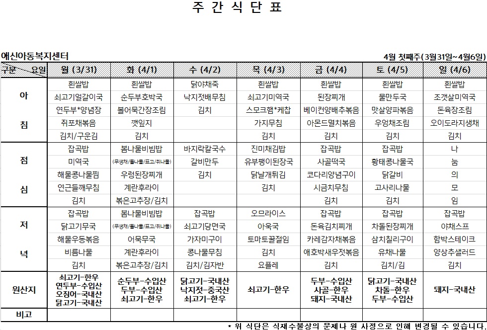 '[애신소식] > 주간식단표' 카테고리의 다른 글