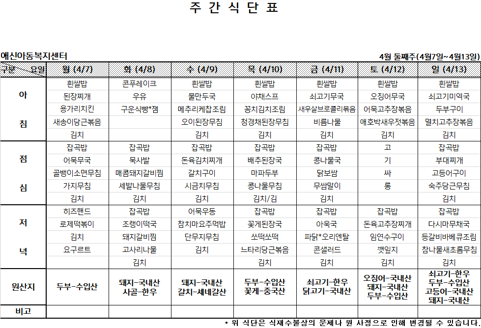 | 2025년 4월 넷째주 주간식단표 (1) | 2025.04.20 |