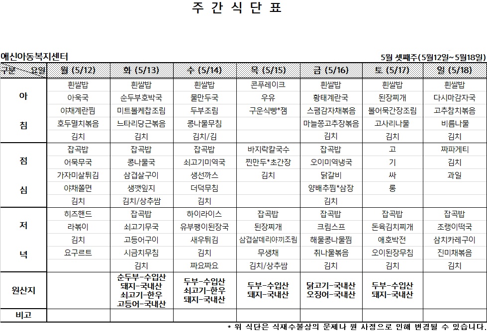 | 2025년 5월 둘째주 주간식단표 (0) | 2025.05.04 |