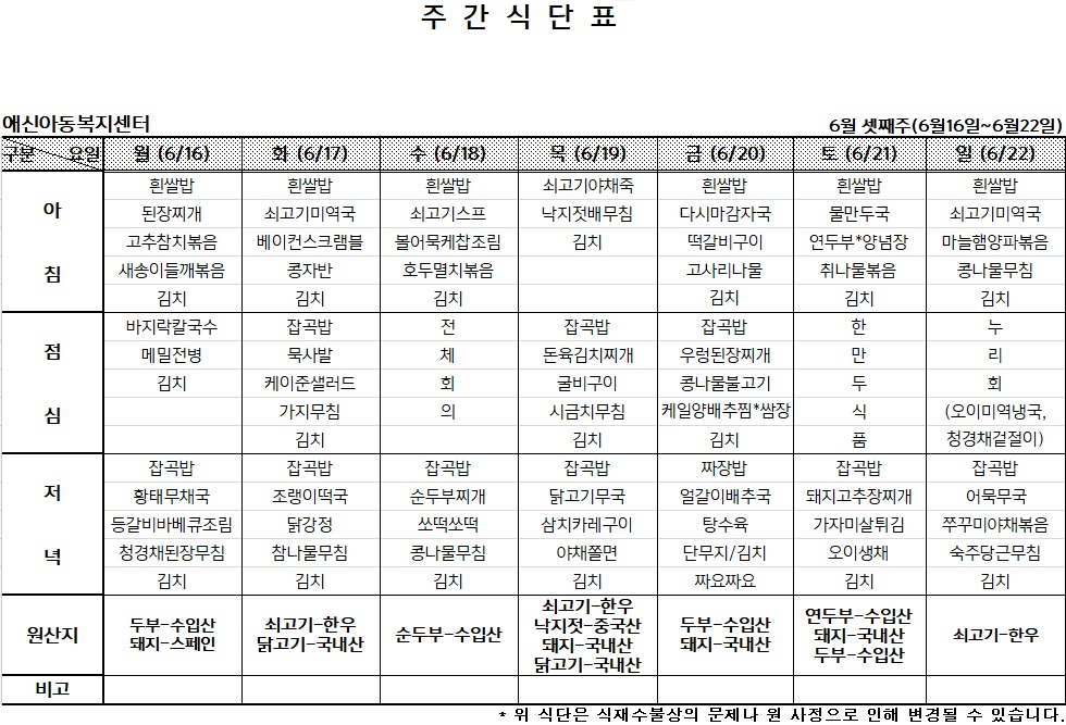 | 2025년 6월 둘째주 주간식단표 (0) | 2025.06.15 |