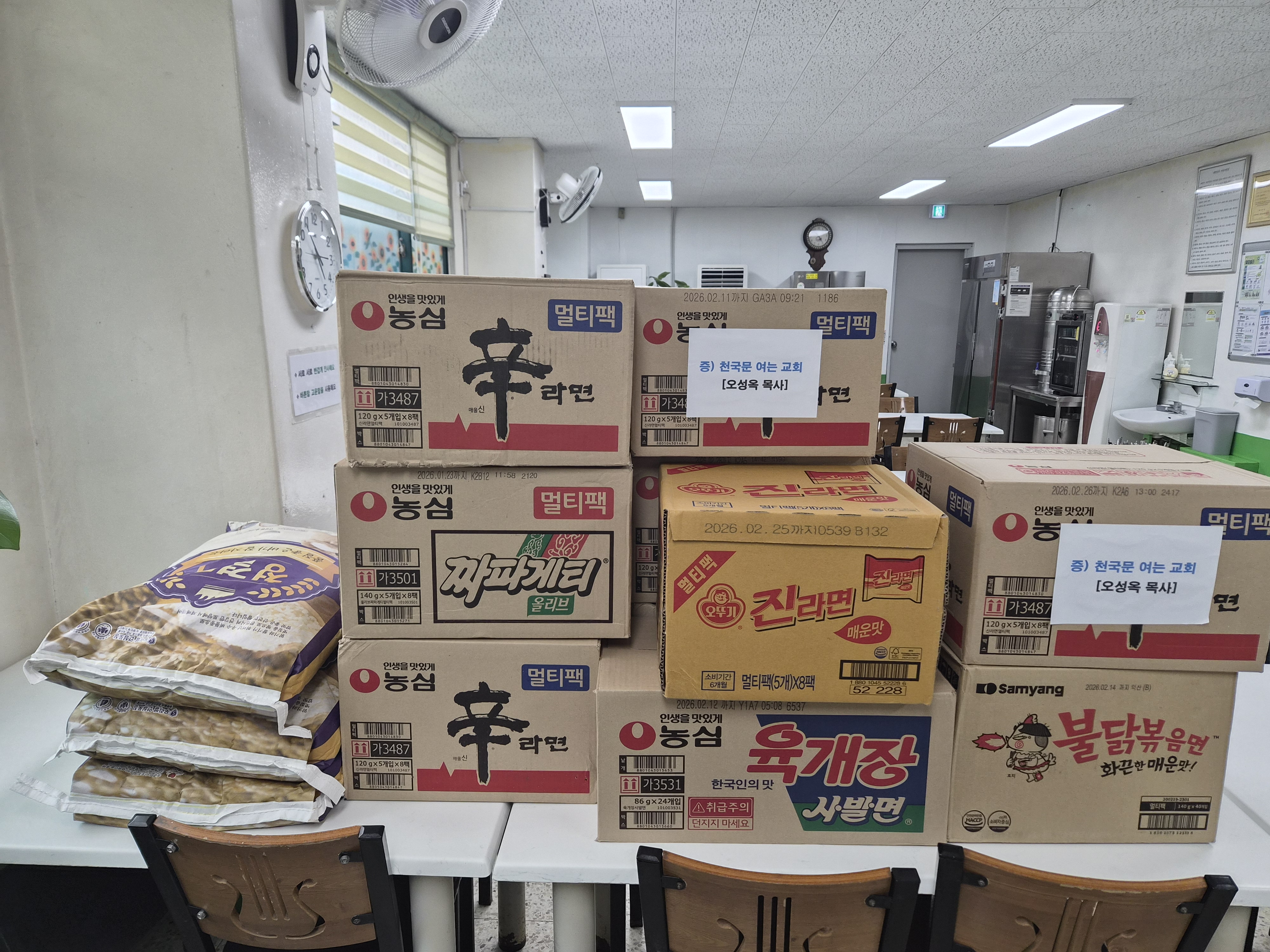 천국문 여는 교회에서 쌀과 라면을 후원해주셨습니다.