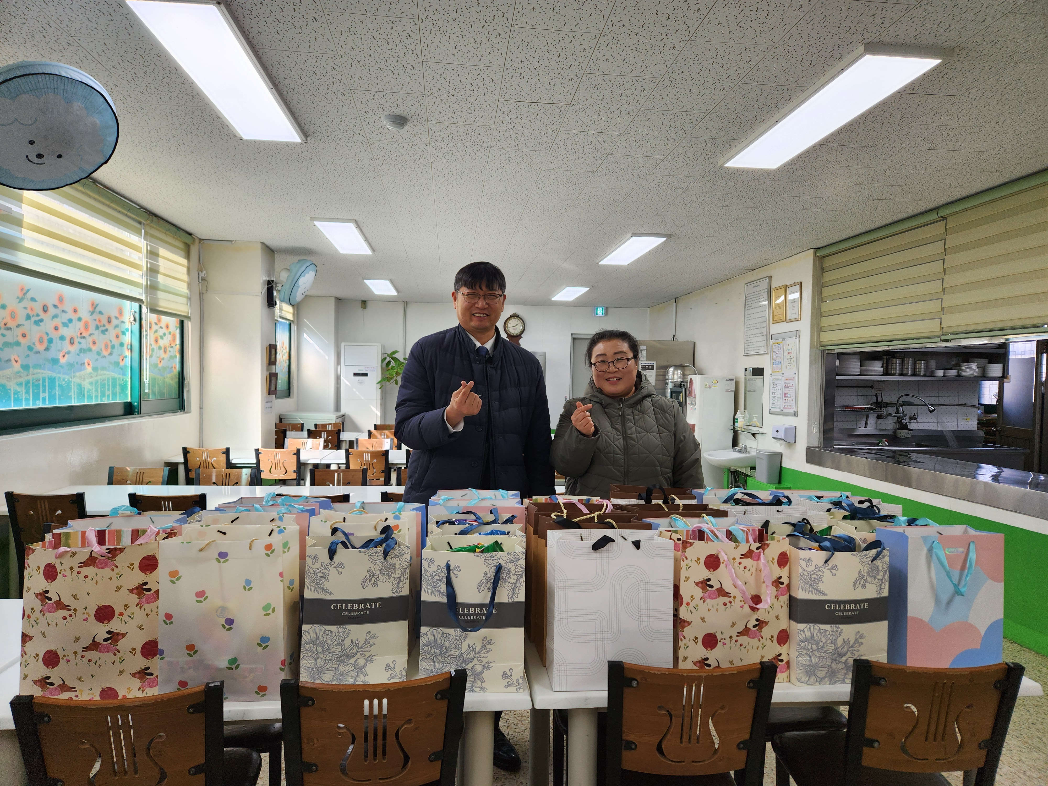 아이들에게 크리스마스 선물을 전달해주셨습니다.