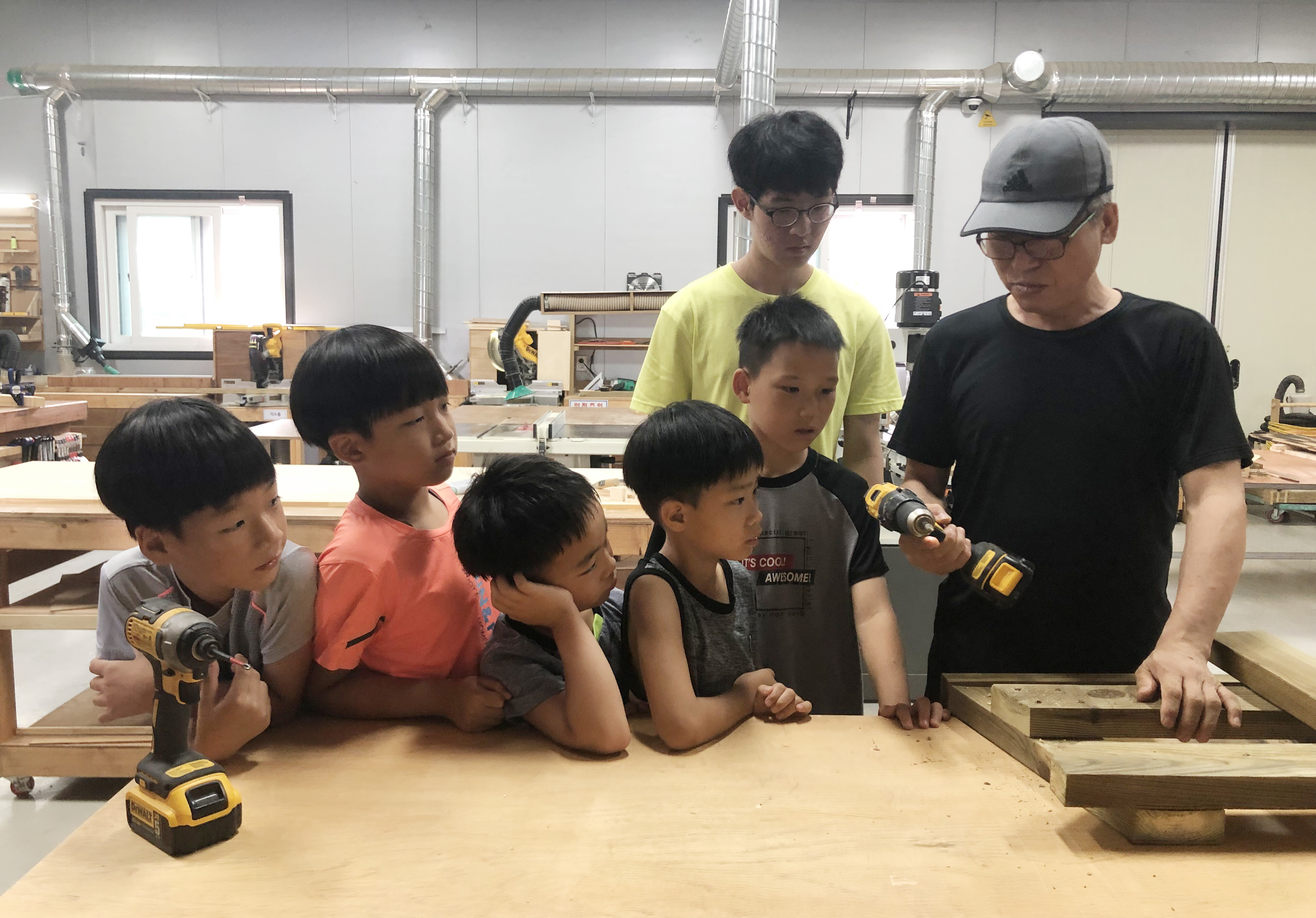 우리아이들이 직접 벤치를 만드는 목공프로그램에 참여했습니다.