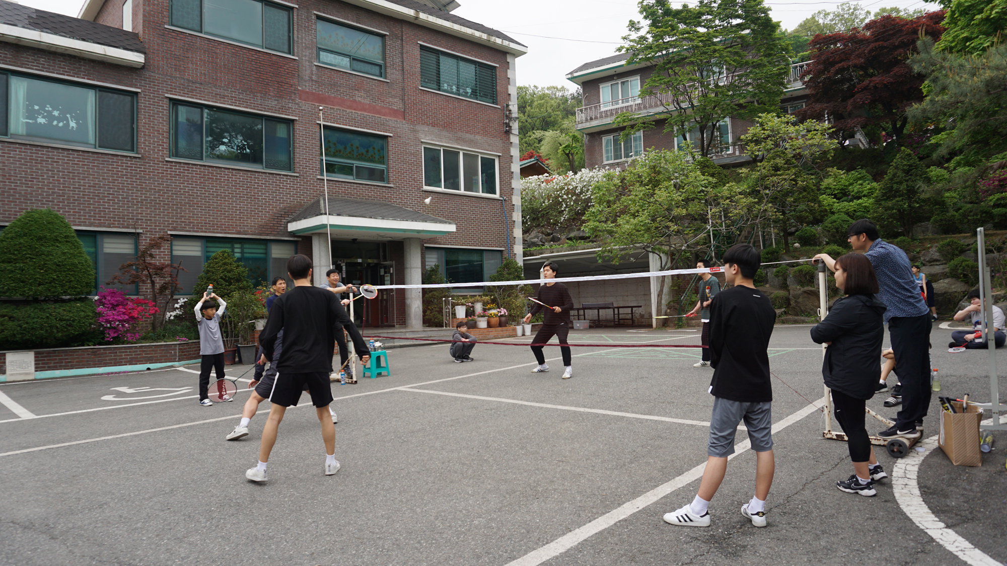마당에서 배드민턴과 탁구시합 중이네요^^