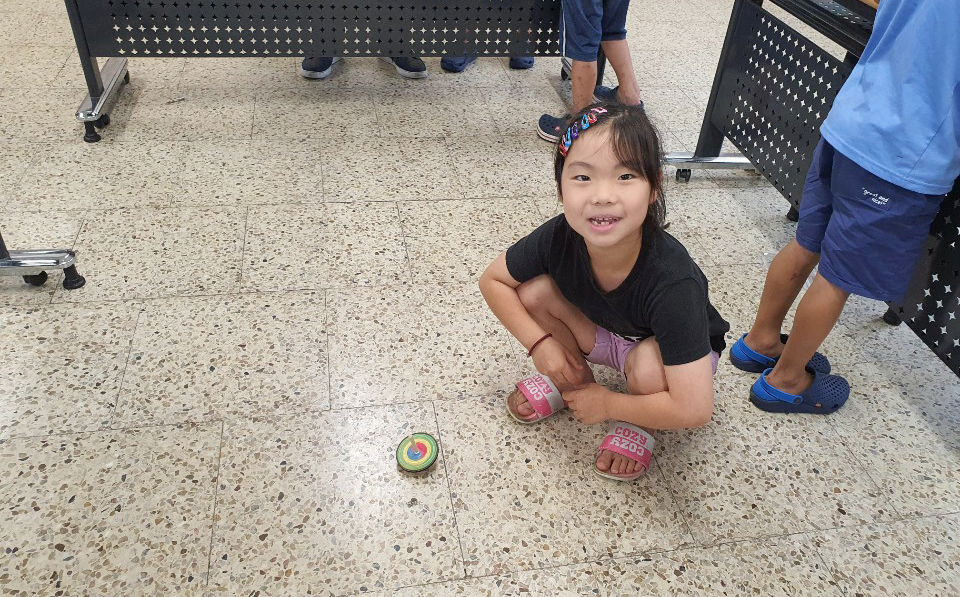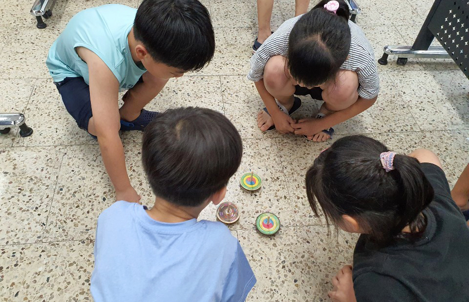 팽이를 만든 후에는 다 같이 모여 팽이도 돌려보고