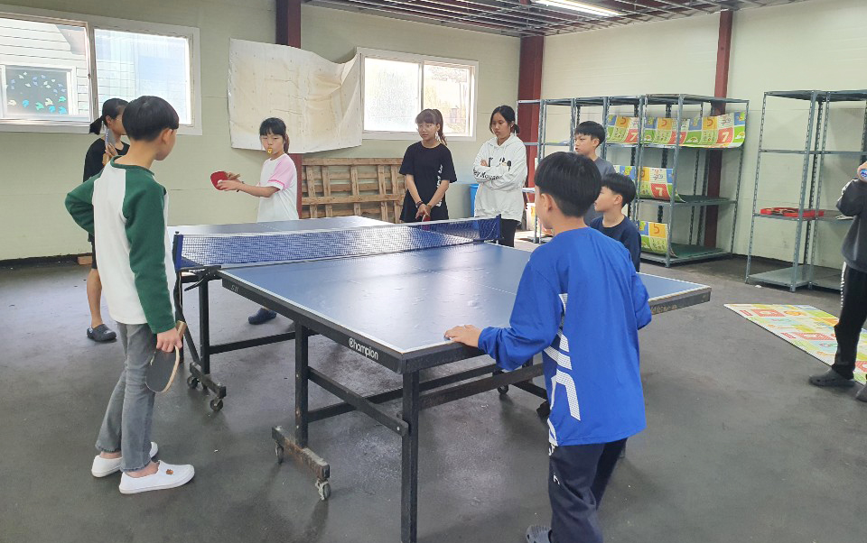 팀별로 탁구, 보육사선생님과의 탁구!