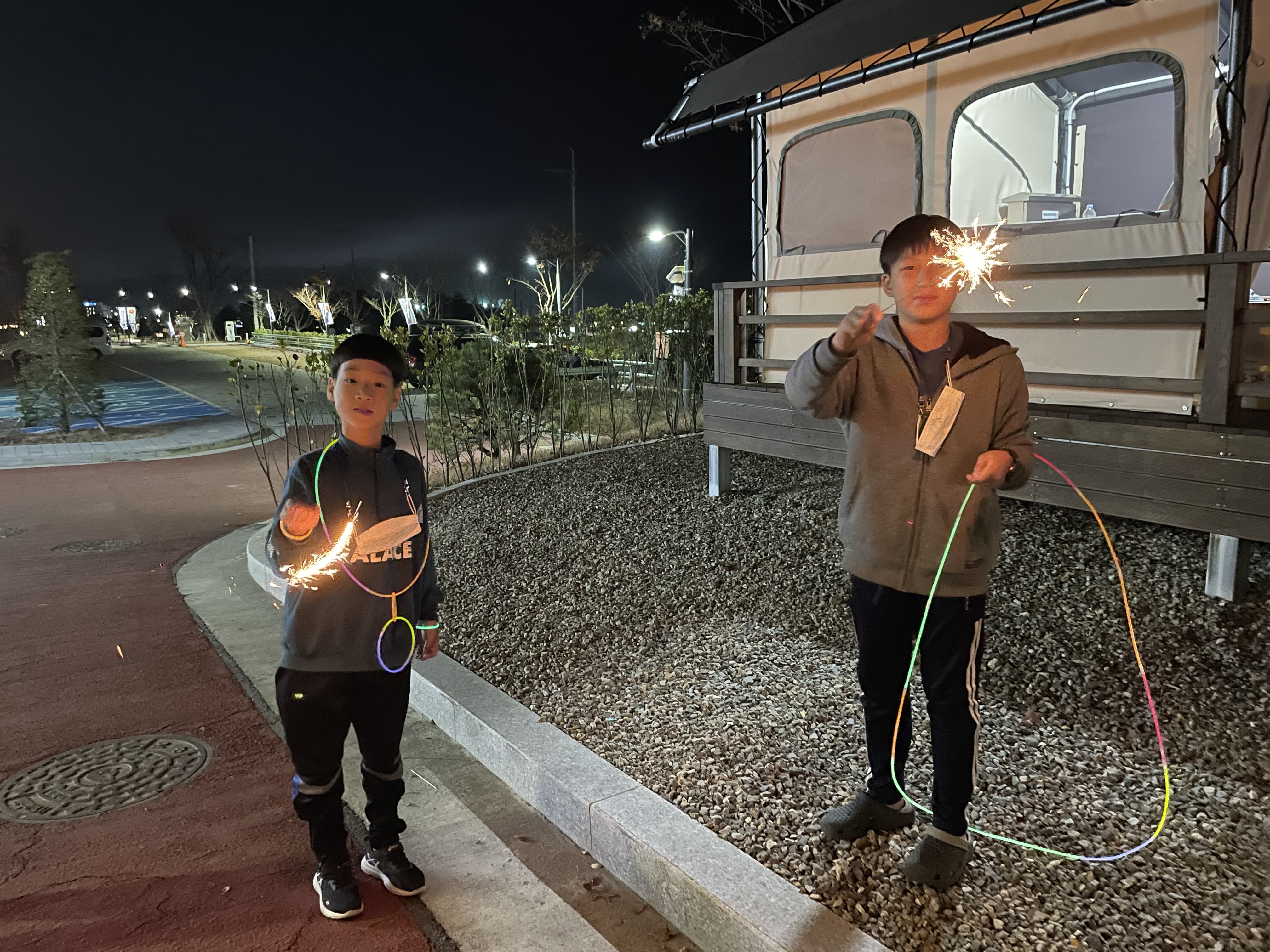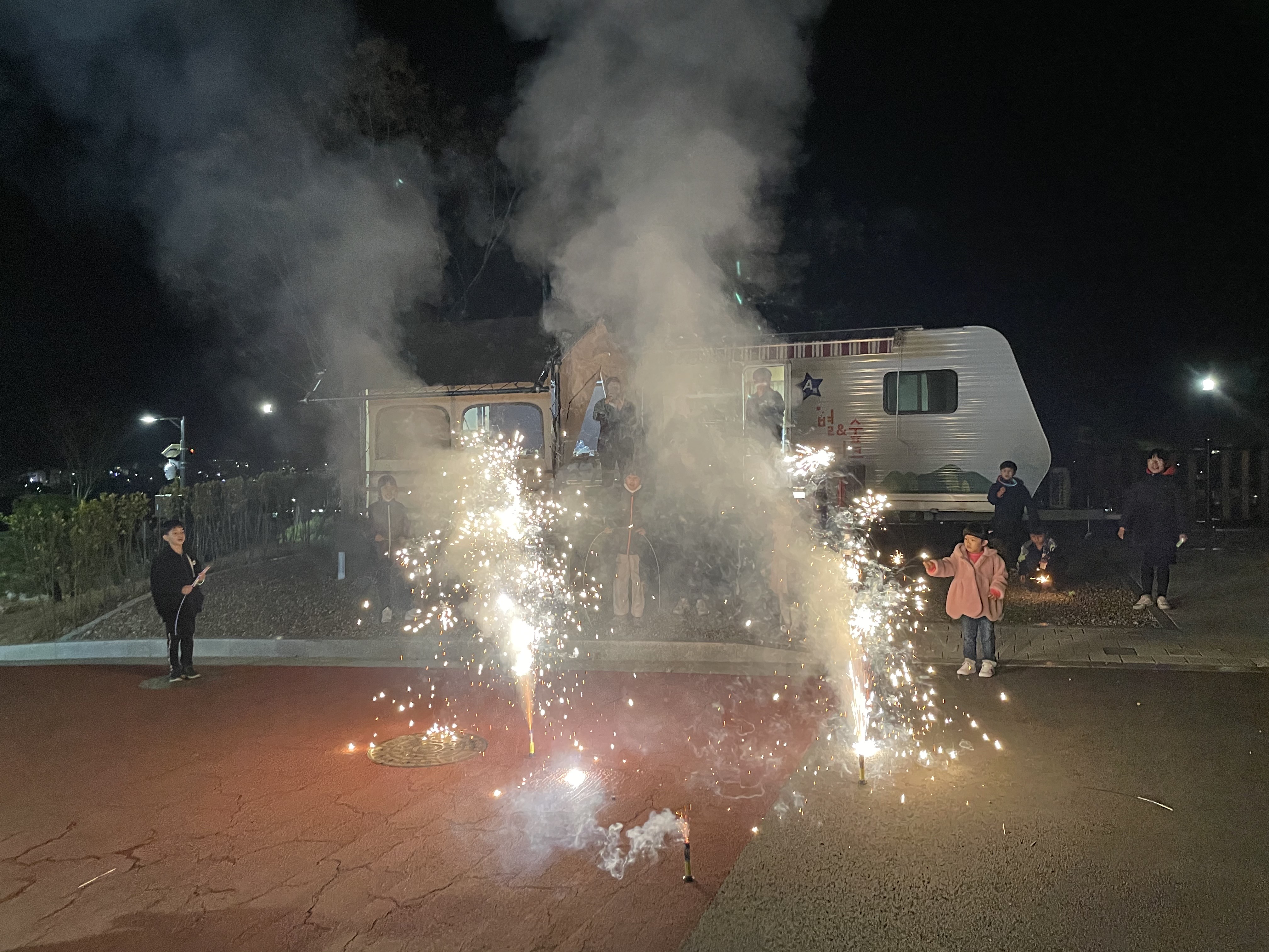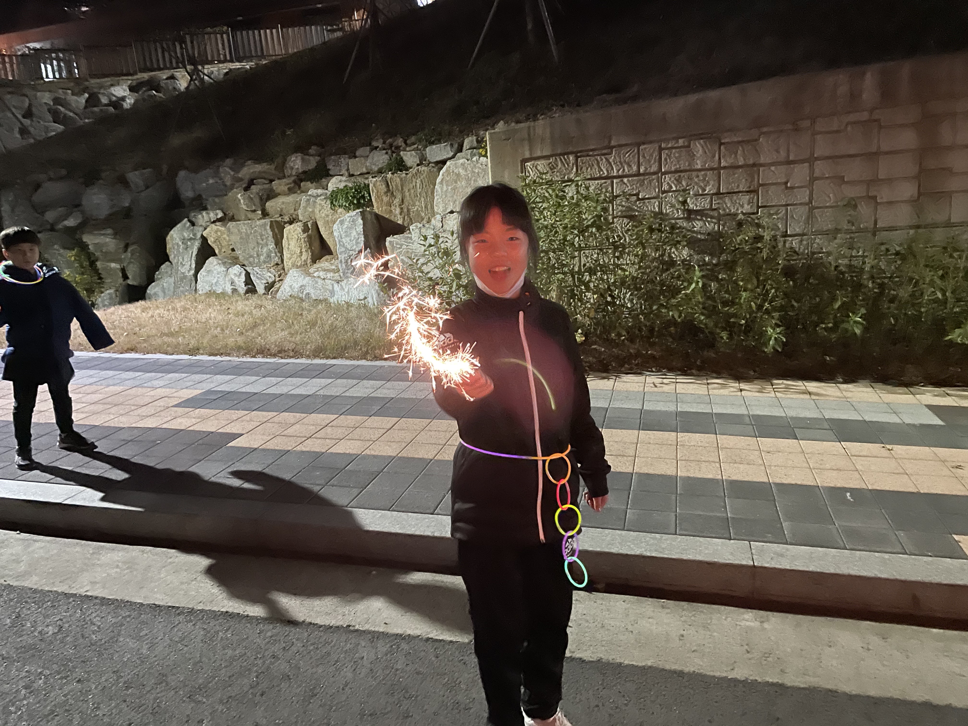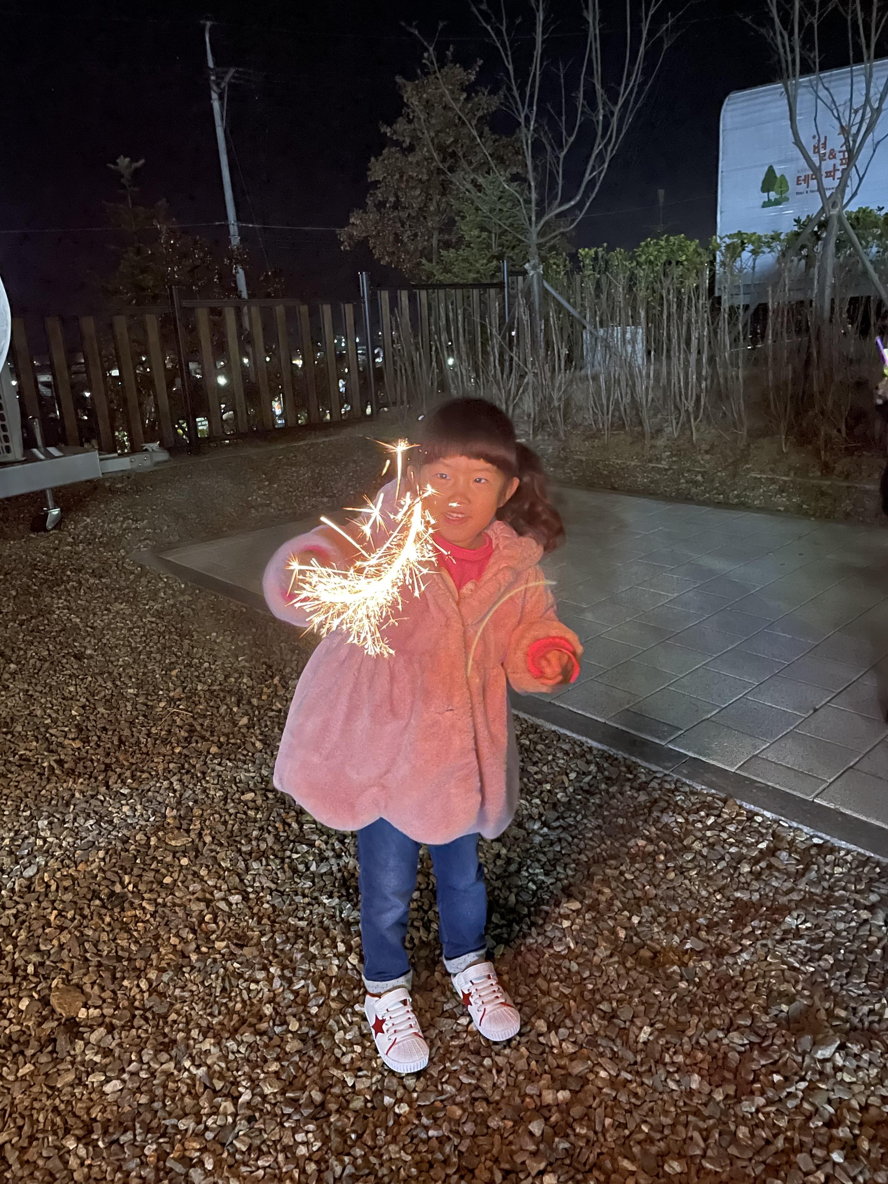 어두워질 때 다같이 모여 불꽃놀이도 했어요!
