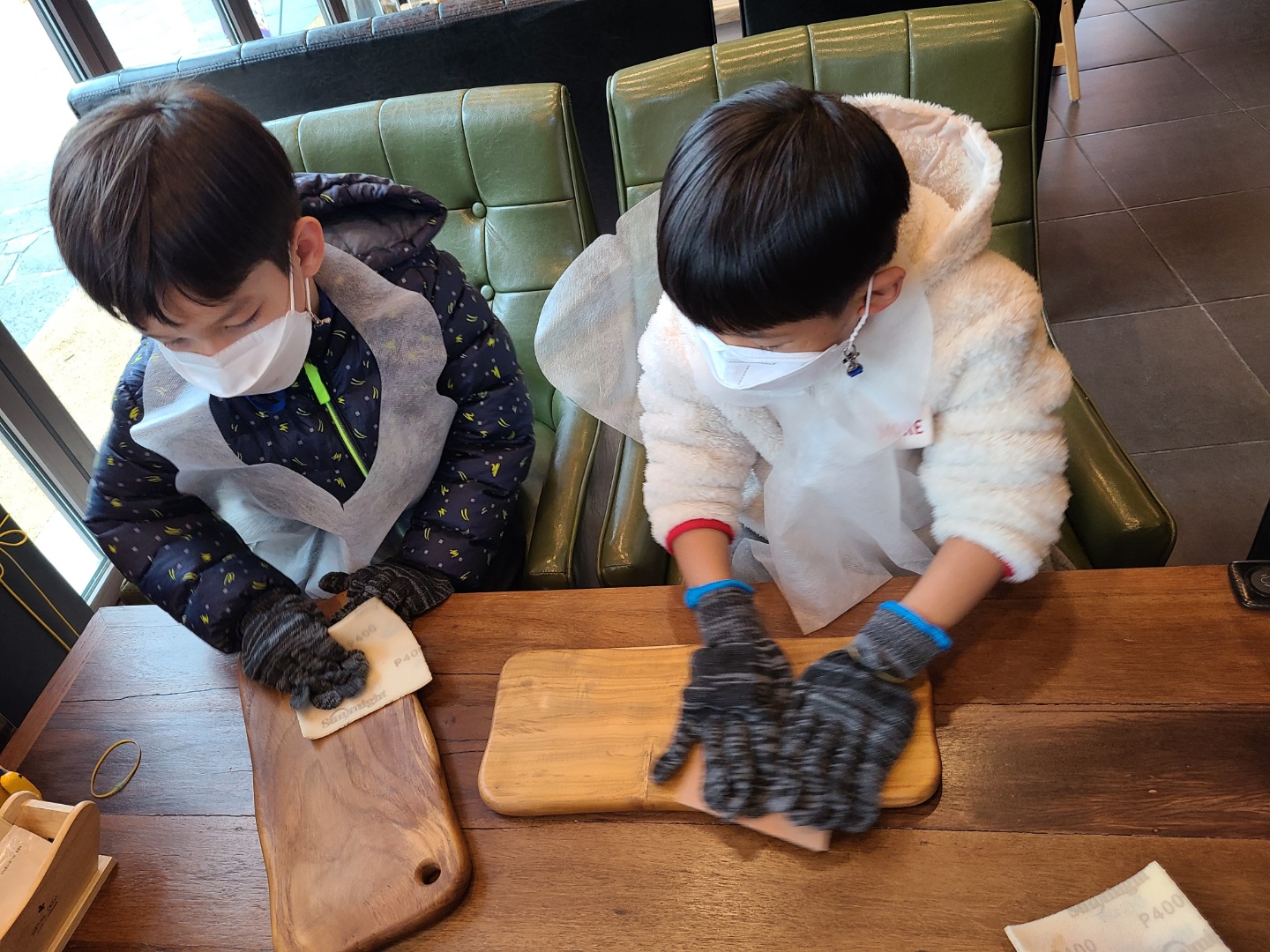후원자분들께 드릴 도마를 만들러 왔어요!