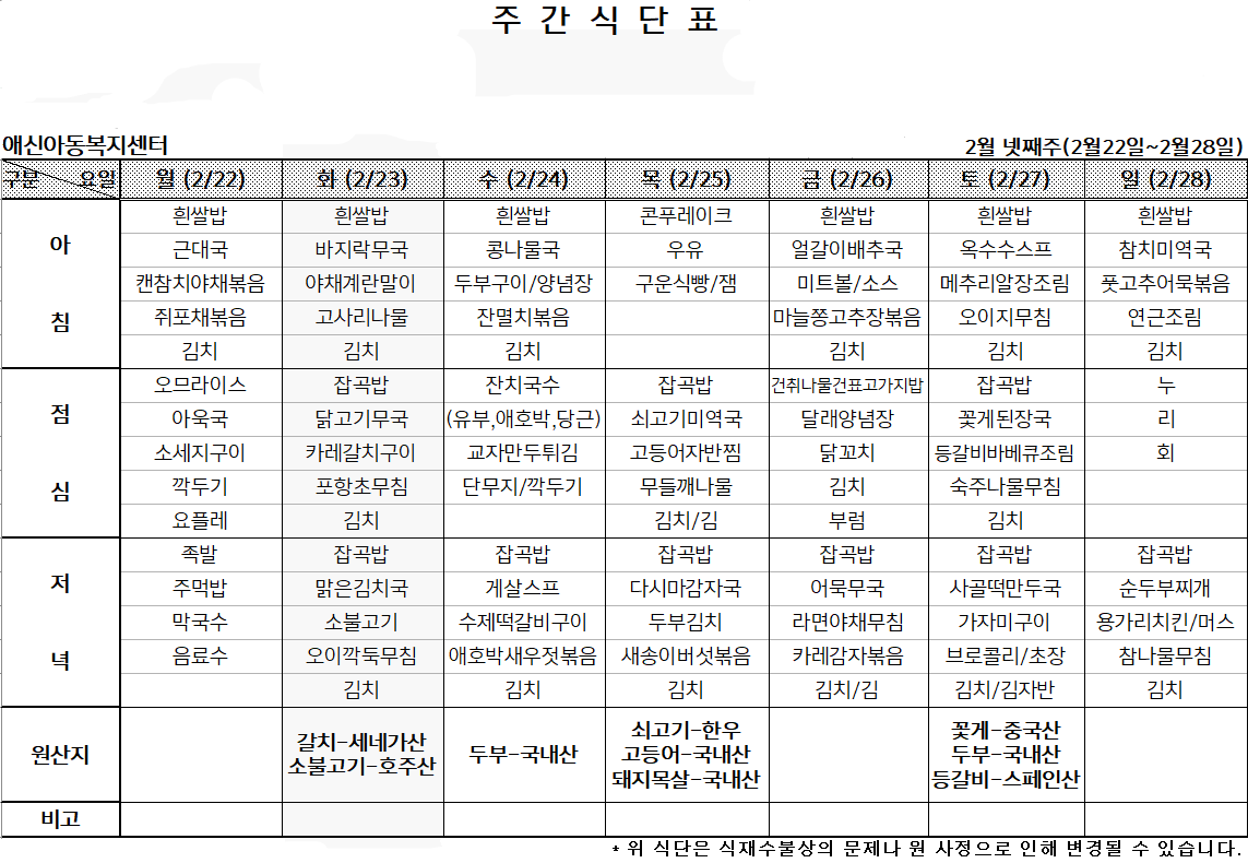 '[애신소식] > 주간식단표' 카테고리의 다른 글