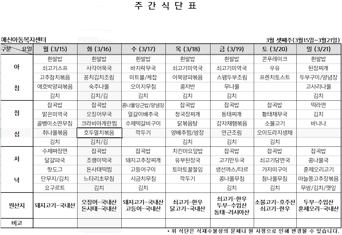 '[애신소식] > 주간식단표' 카테고리의 다른 글