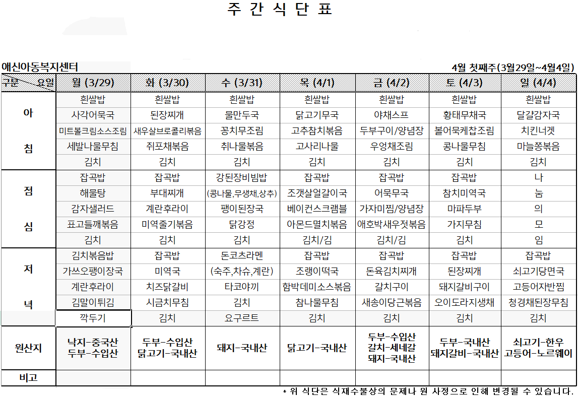 '[애신소식] > 주간식단표' 카테고리의 다른 글