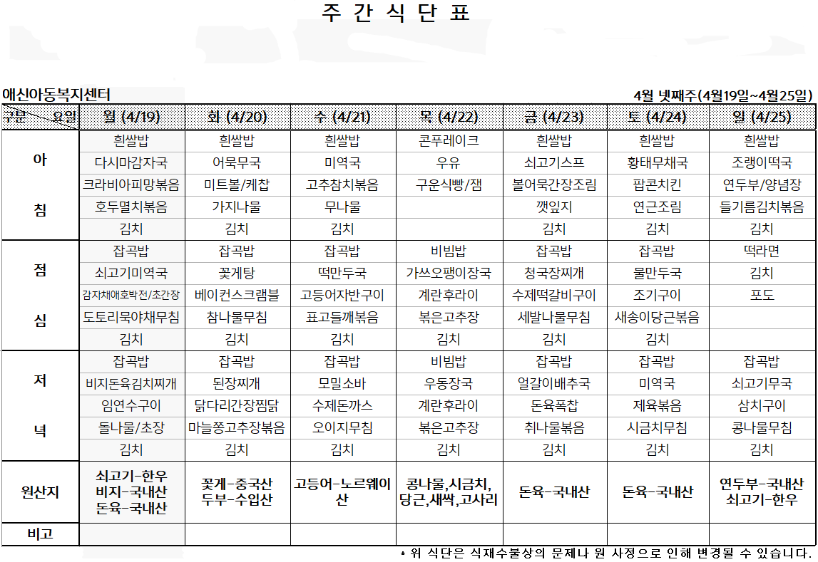 '[애신소식] > 주간식단표' 카테고리의 다른 글