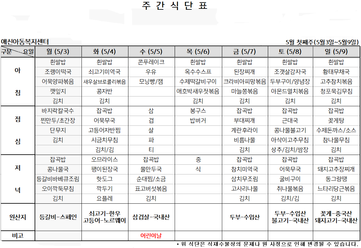 '[애신소식] > 주간식단표' 카테고리의 다른 글
