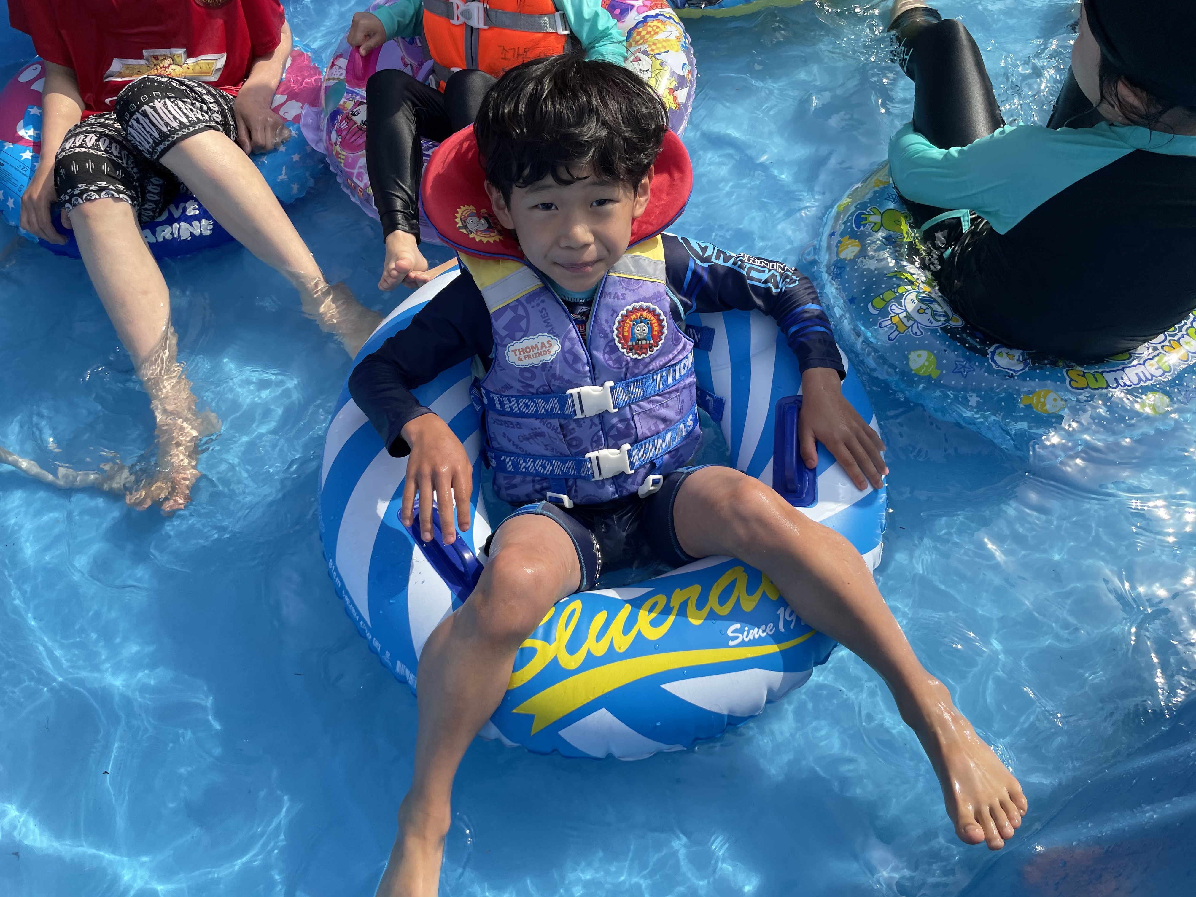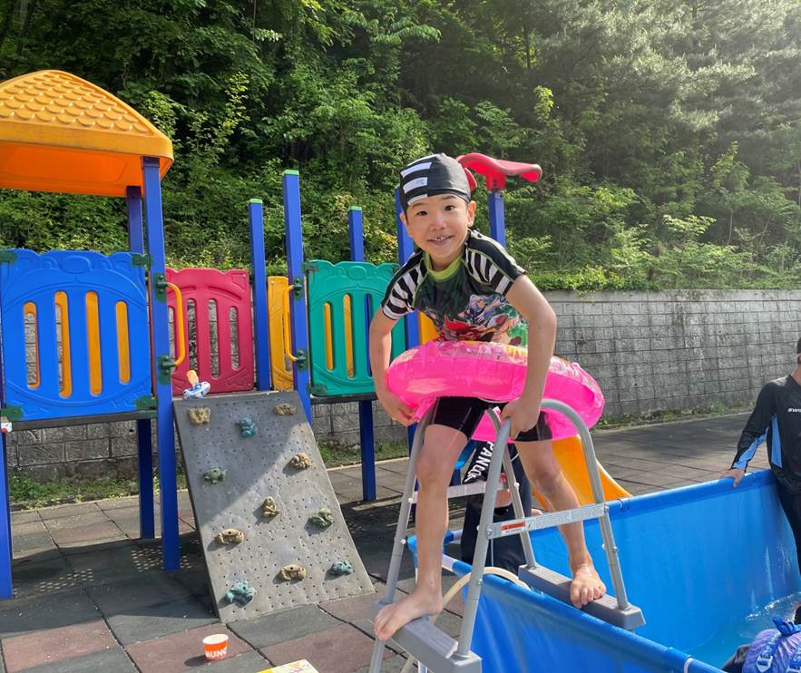풀장에 아직 물이 다 안 받아졌는데도 즐거워합니다ㅎㅎ
