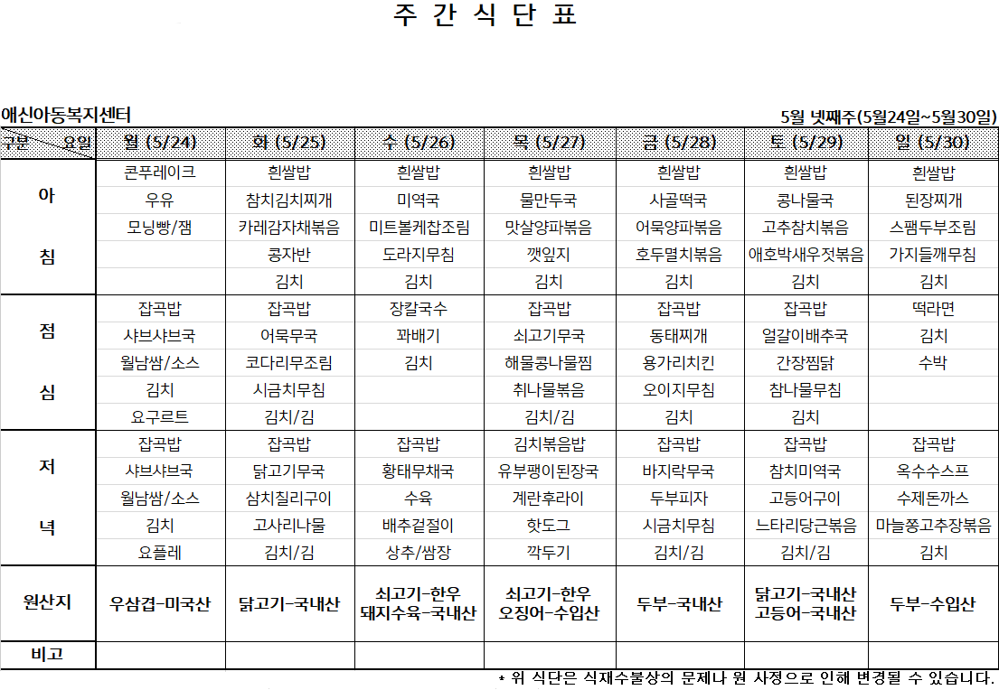 '[애신소식] > 주간식단표' 카테고리의 다른 글