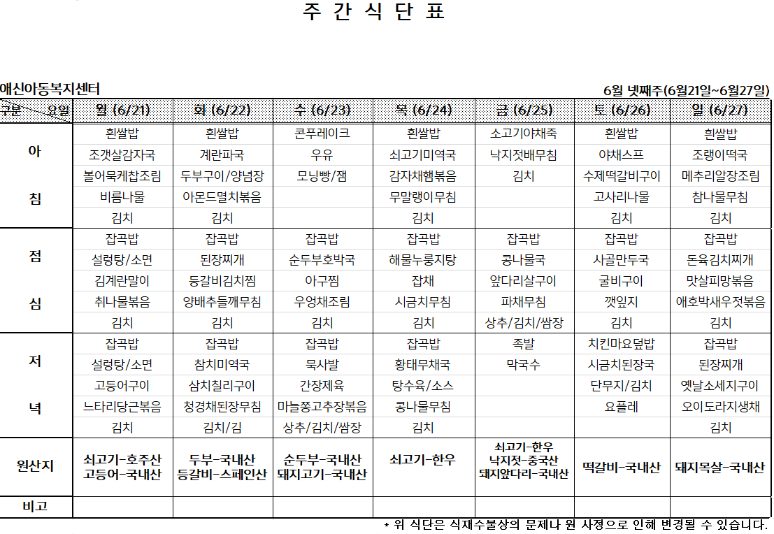 '[애신소식] > 주간식단표' 카테고리의 다른 글