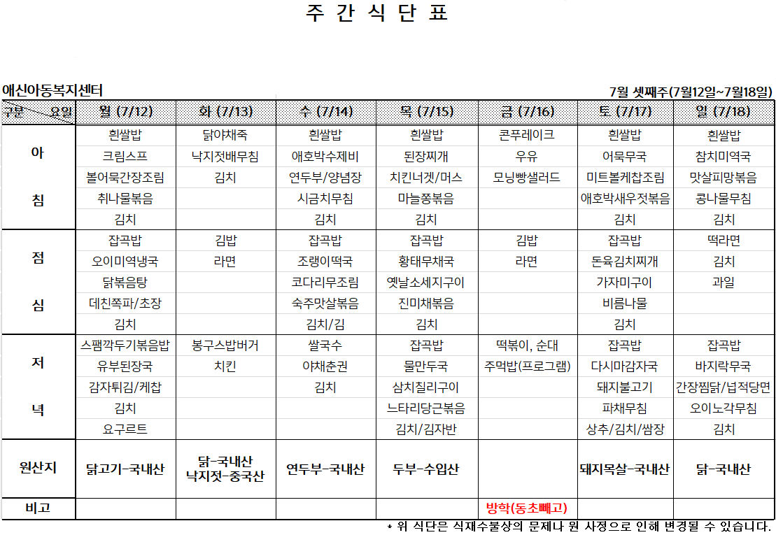 7월 첫째 주 주간식단표  (0) 2021.06.25
