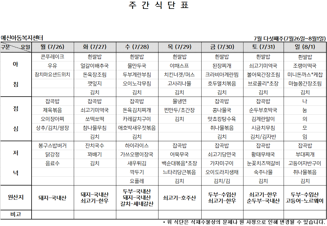 '[애신소식] > 주간식단표' 카테고리의 다른 글