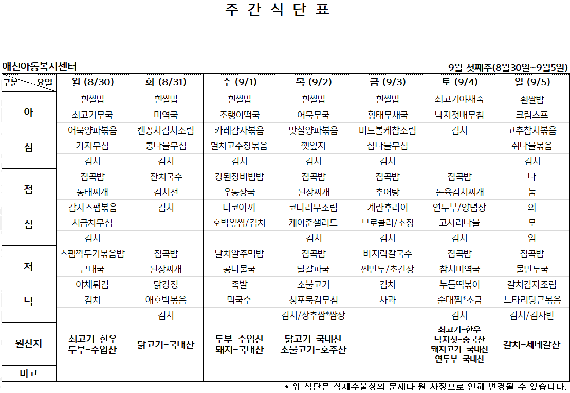 '[애신소식] > 주간식단표' 카테고리의 다른 글