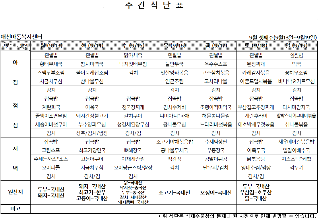 '[애신소식] > 주간식단표' 카테고리의 다른 글