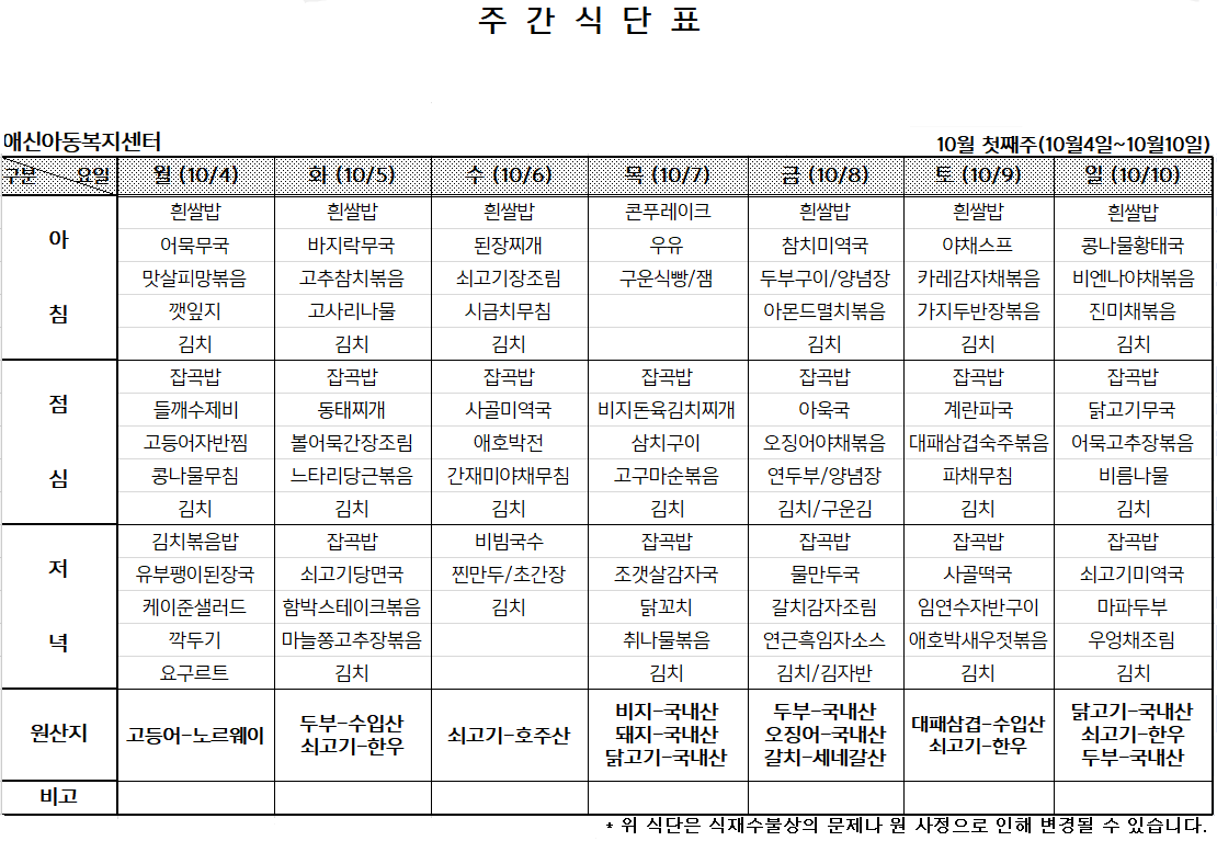 '[애신소식] > 주간식단표' 카테고리의 다른 글