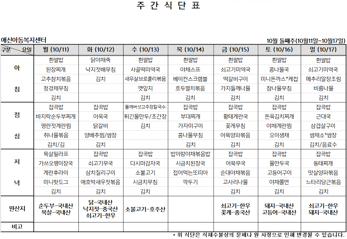 '[애신소식] > 주간식단표' 카테고리의 다른 글
