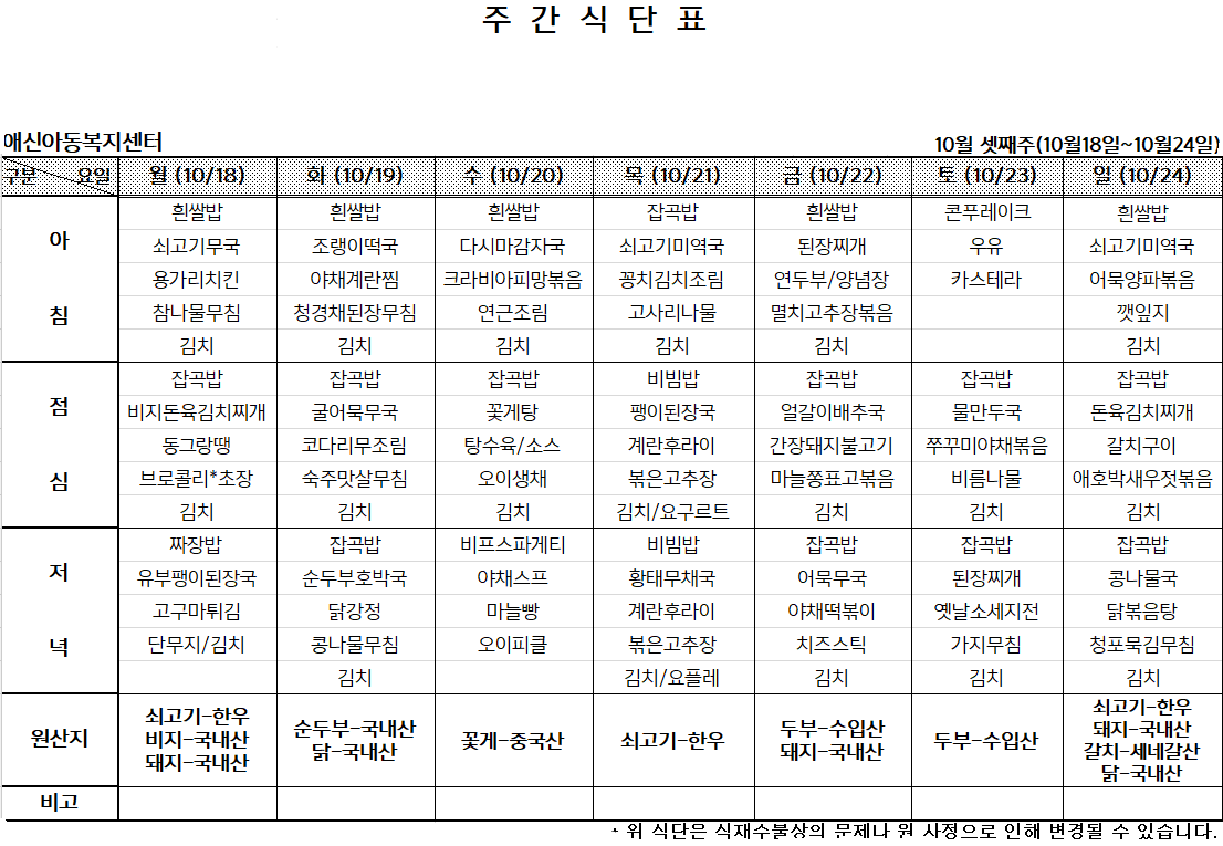 '[애신소식] > 주간식단표' 카테고리의 다른 글