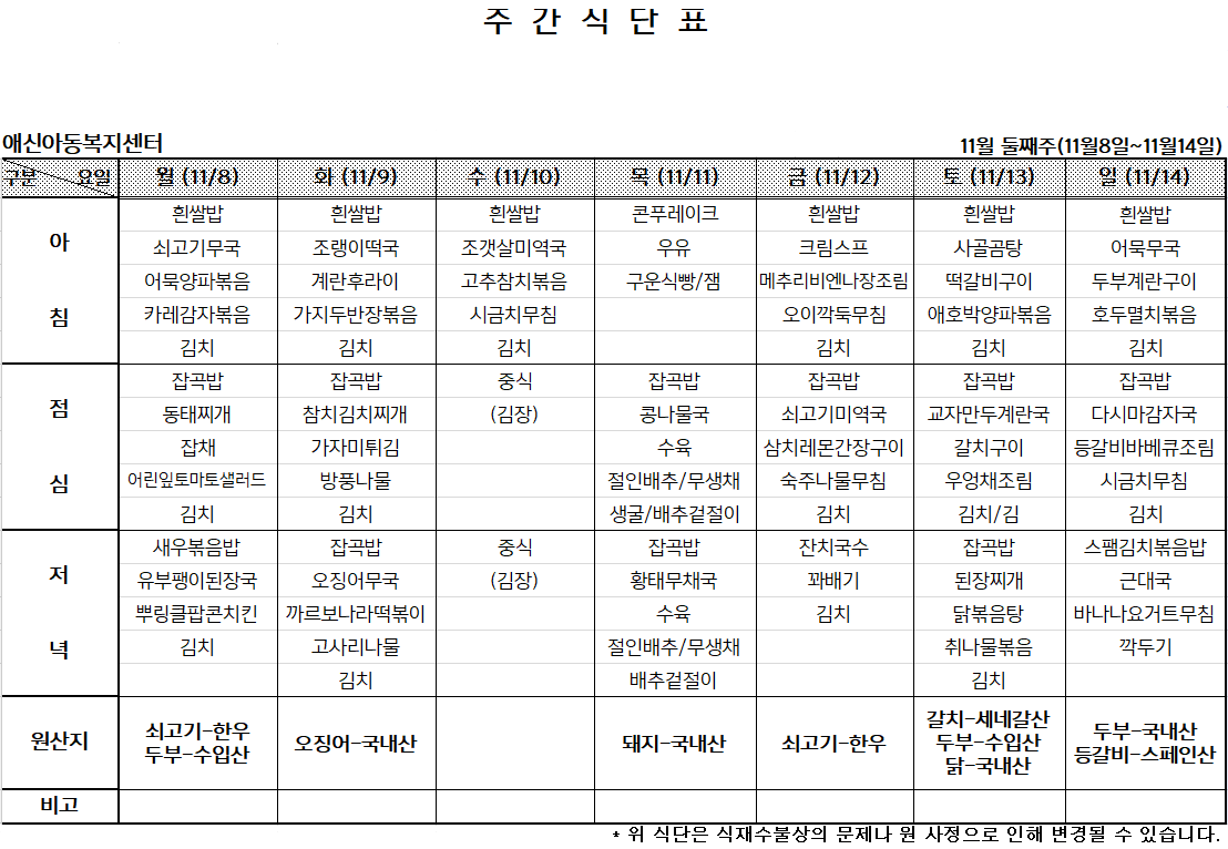 '[애신소식] > 주간식단표' 카테고리의 다른 글
