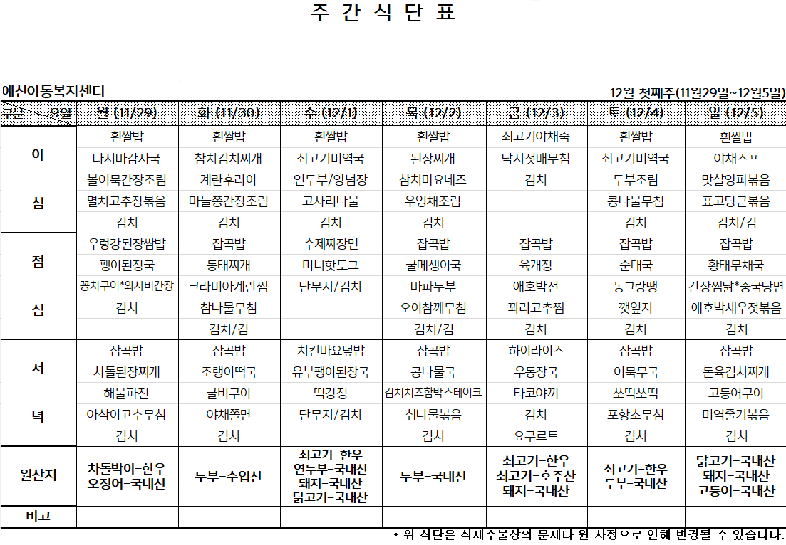 '[애신소식] > 주간식단표' 카테고리의 다른 글