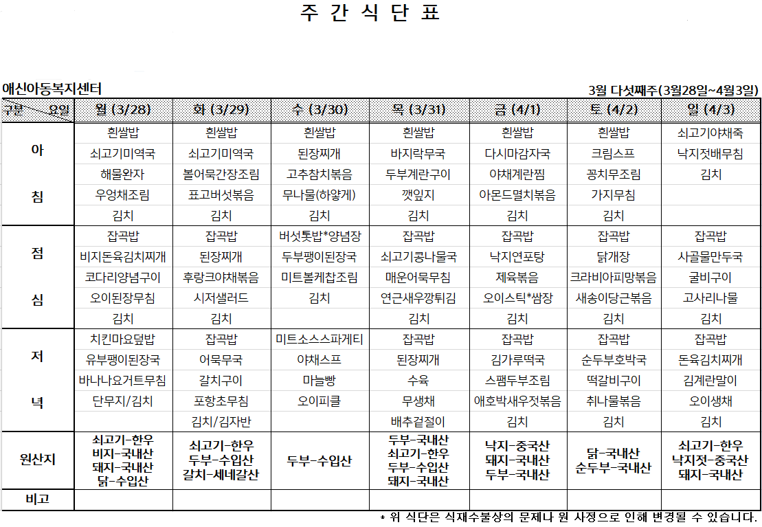 '[애신소식] > 주간식단표' 카테고리의 다른 글