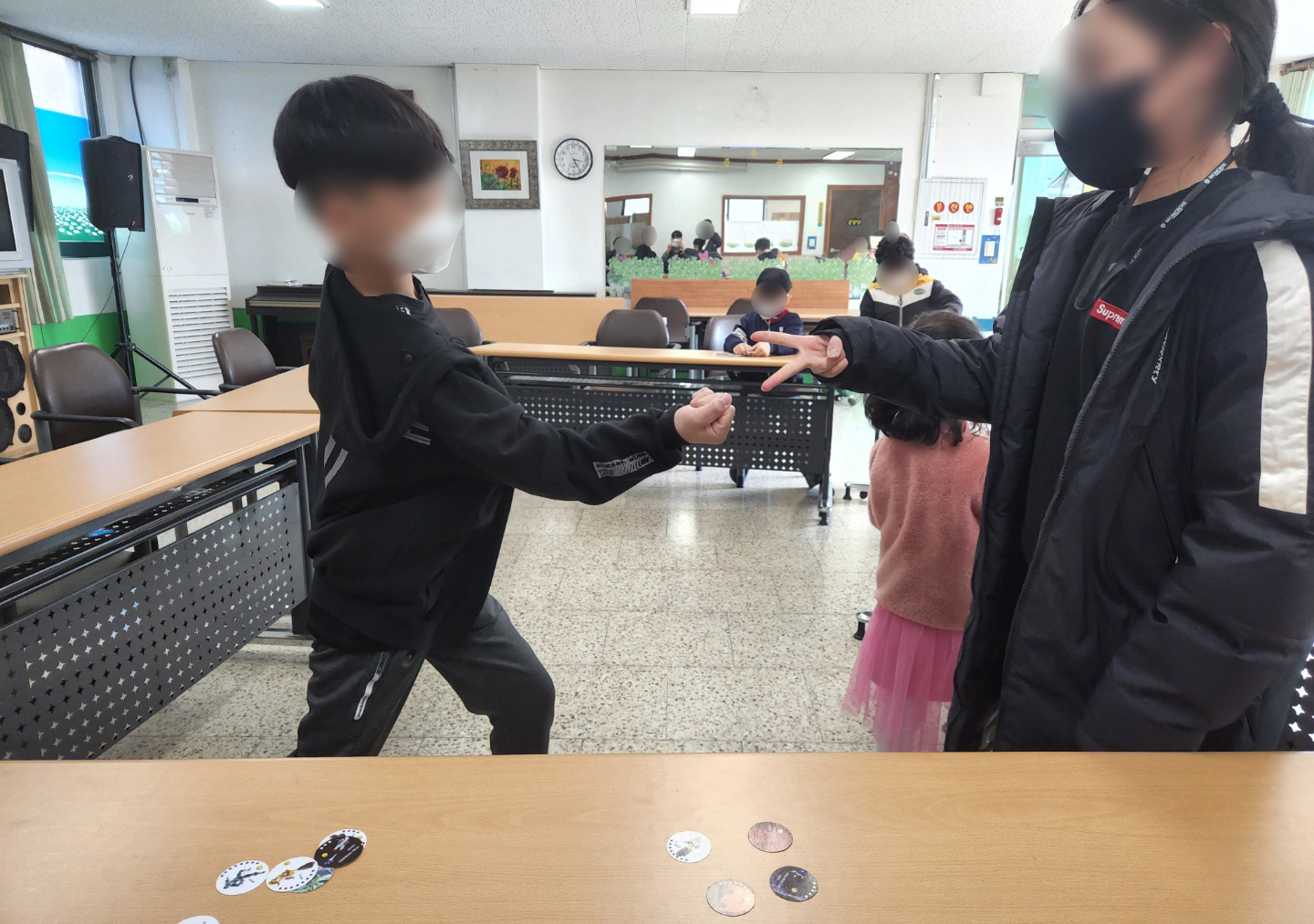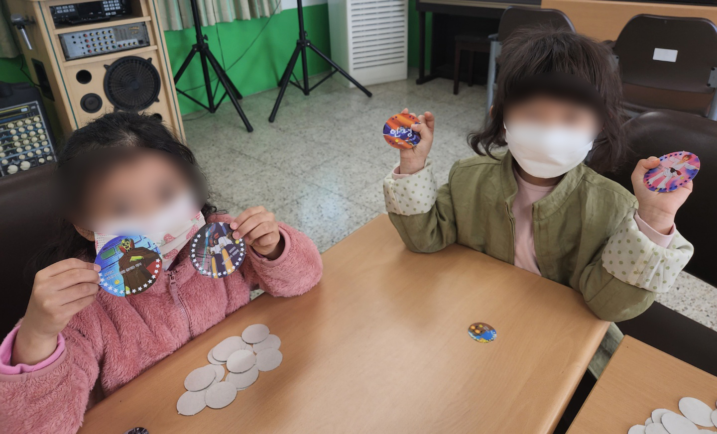 손으로 모아서 넘기기도 해보며 추억의 딱지 놀이에 흠뻑 빠진