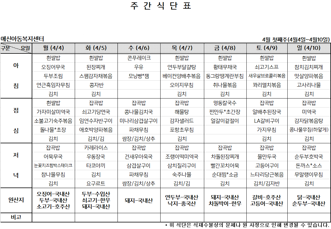 '[애신소식] > 주간식단표' 카테고리의 다른 글