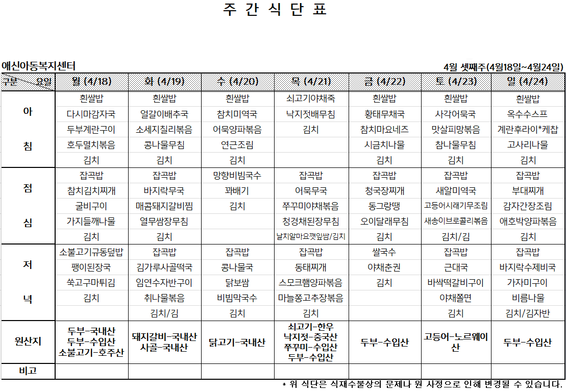 '[애신소식] > 주간식단표' 카테고리의 다른 글