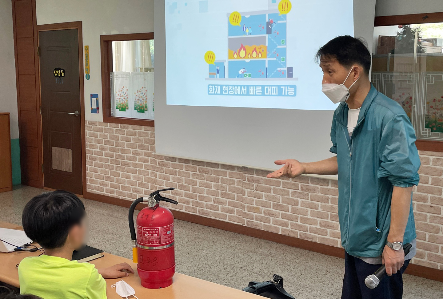 화재가 발생했을 때 효율적으로 피난, 대피할 수 있도록 교육을 진행했습니다.